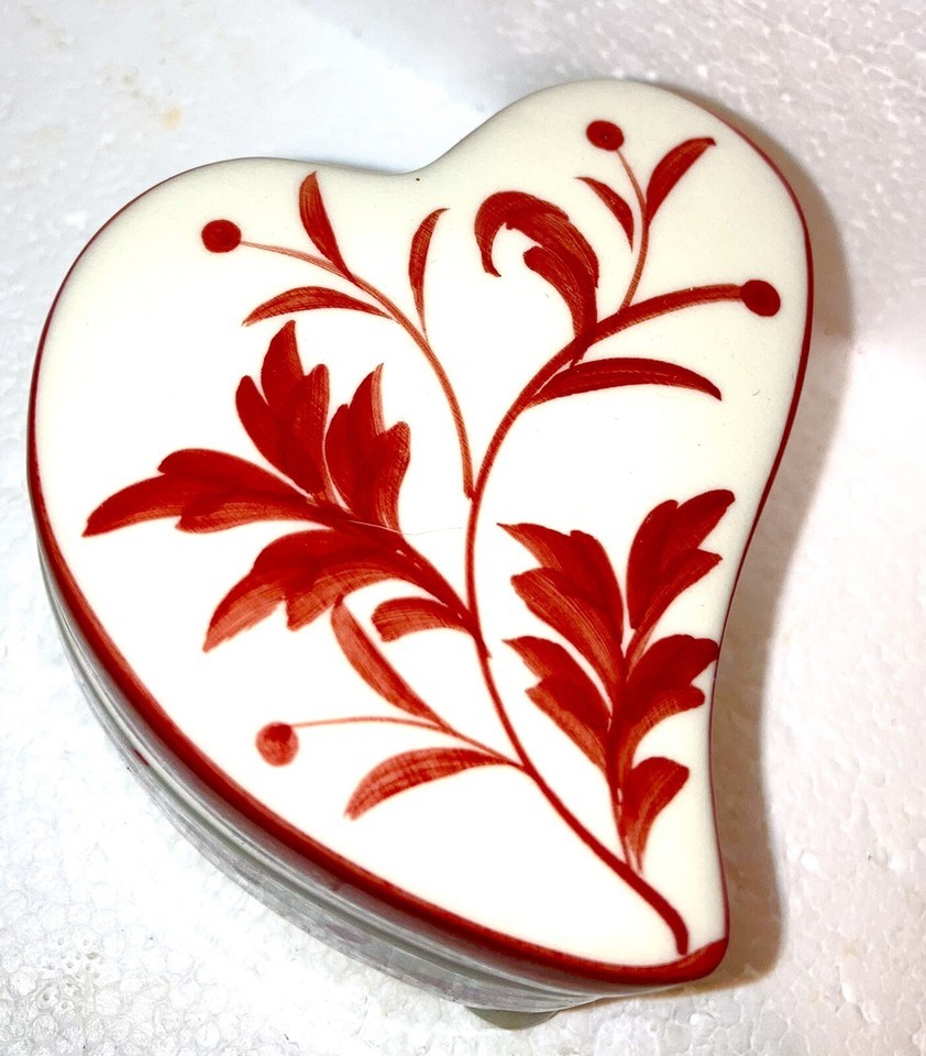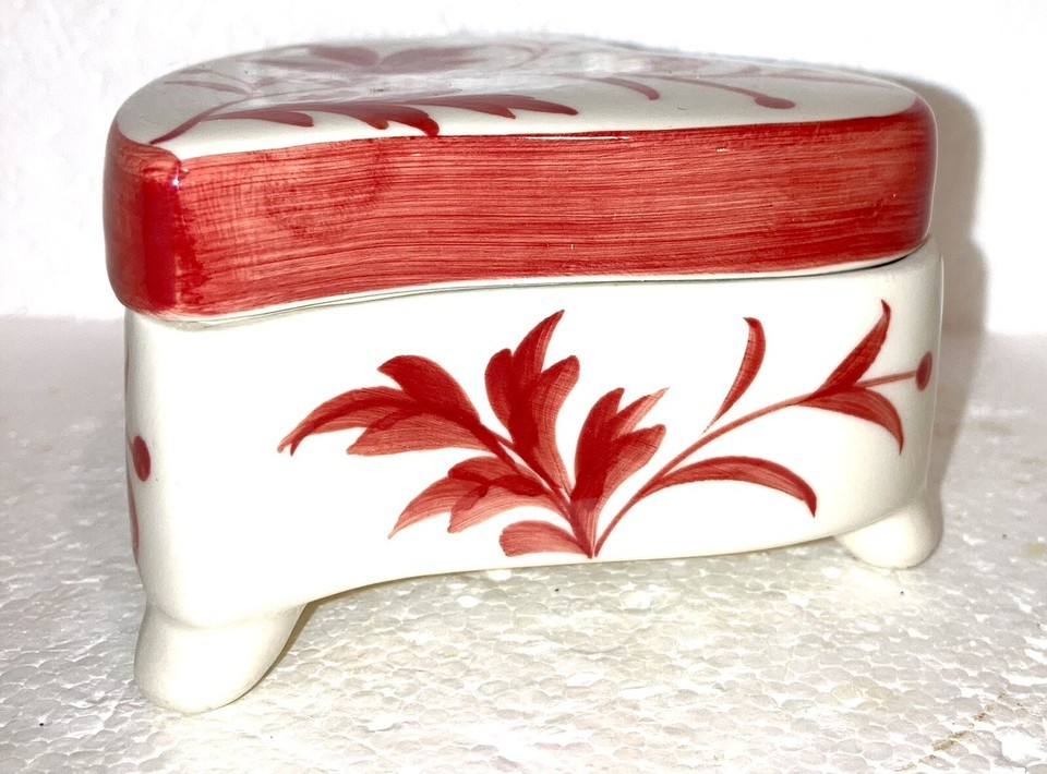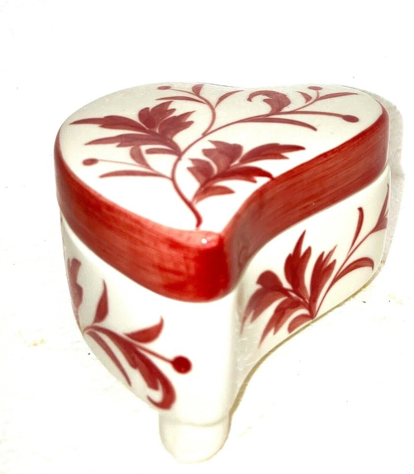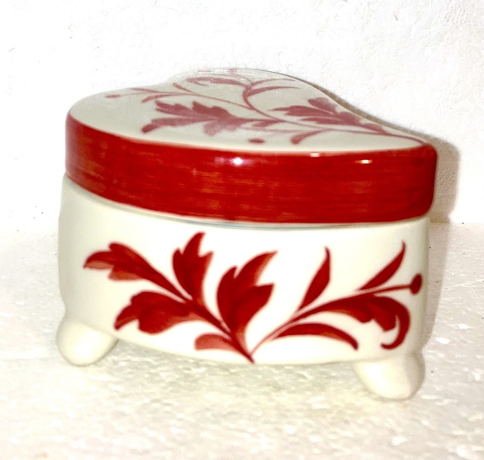 trinket or jewelry box Heart Shaped PORCELAIN Red White New