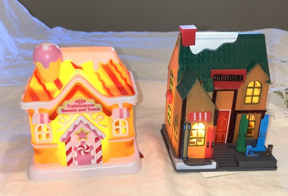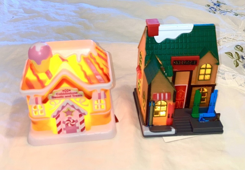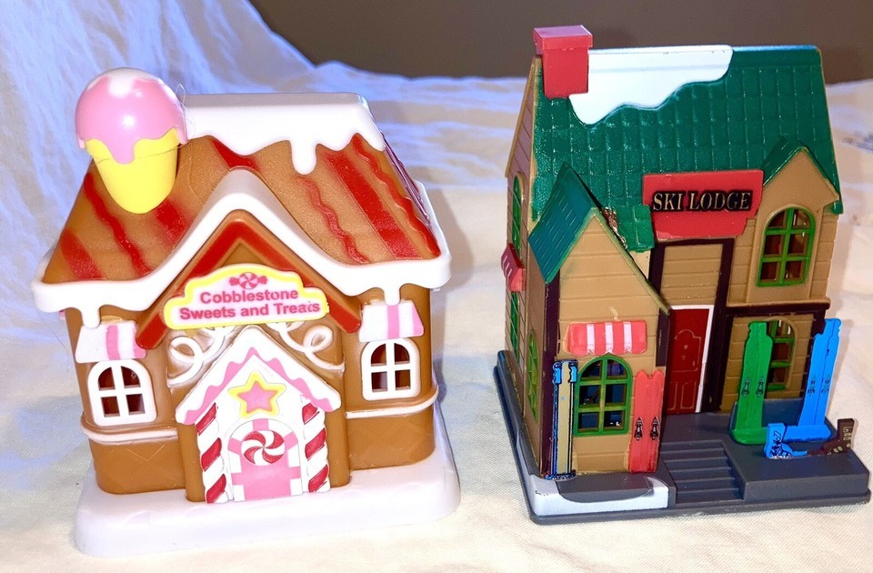 Christmas Villages plastic Lighted Cobblestone Sweets and Treats and Ski Lodge