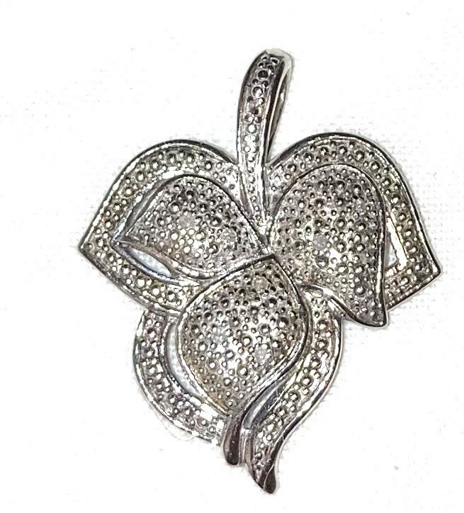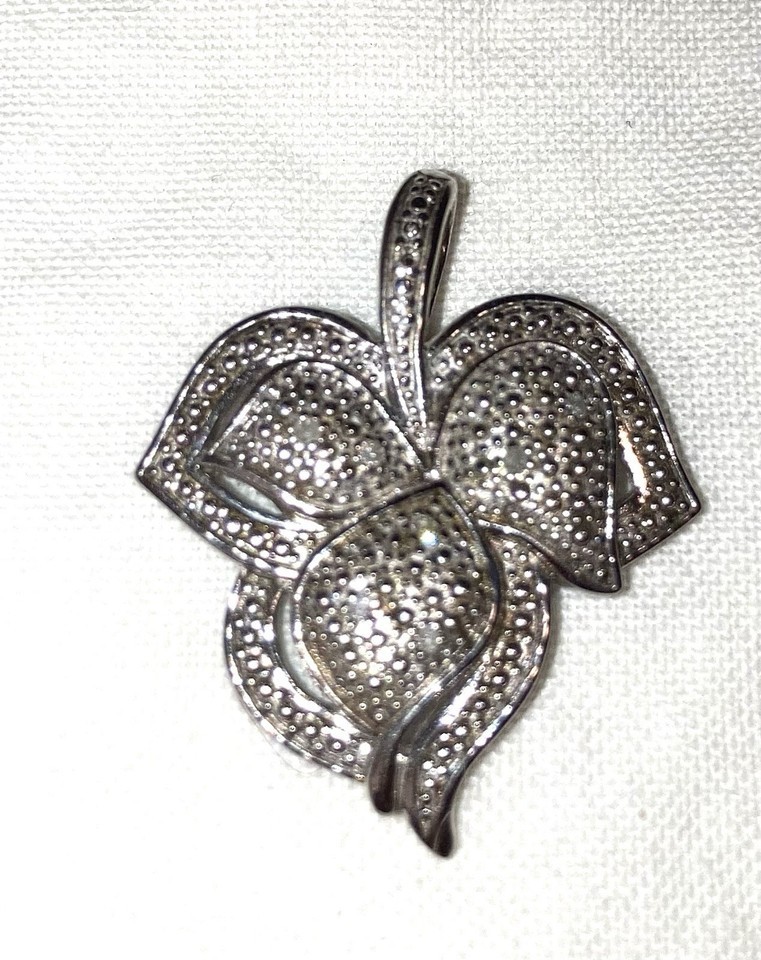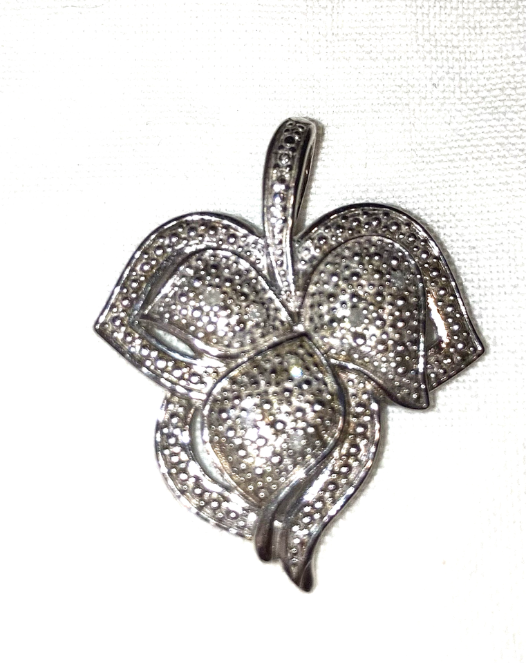 Pendant Solid Sterling Silver Leaf Shaped Textured