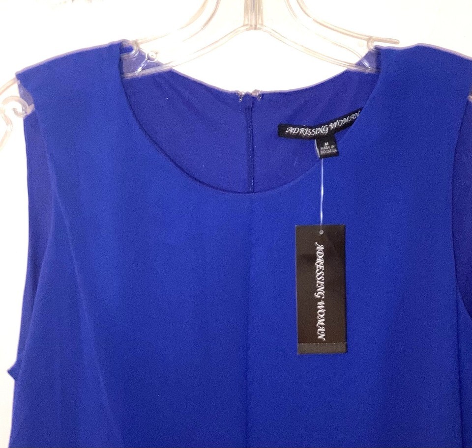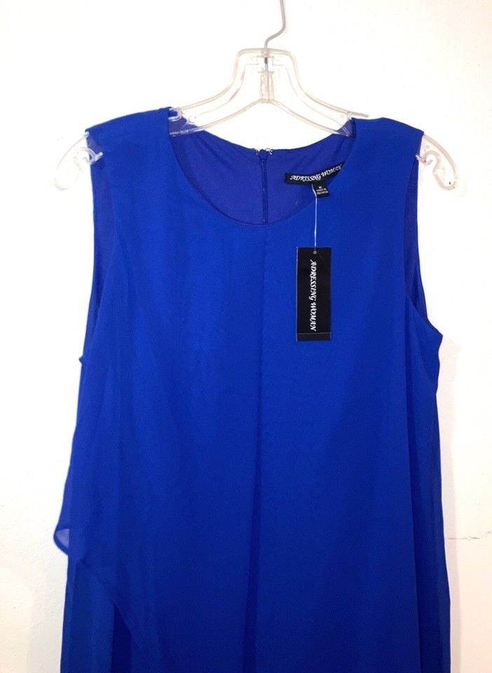 Dress BLUE Sleeveless Draped Front classy elegant Woman’s Size Medium