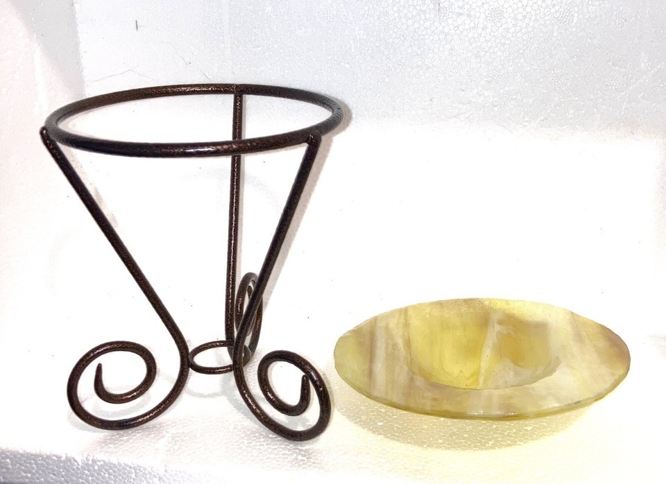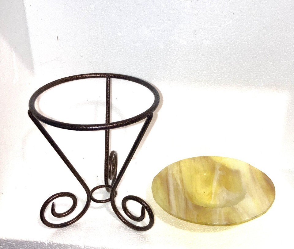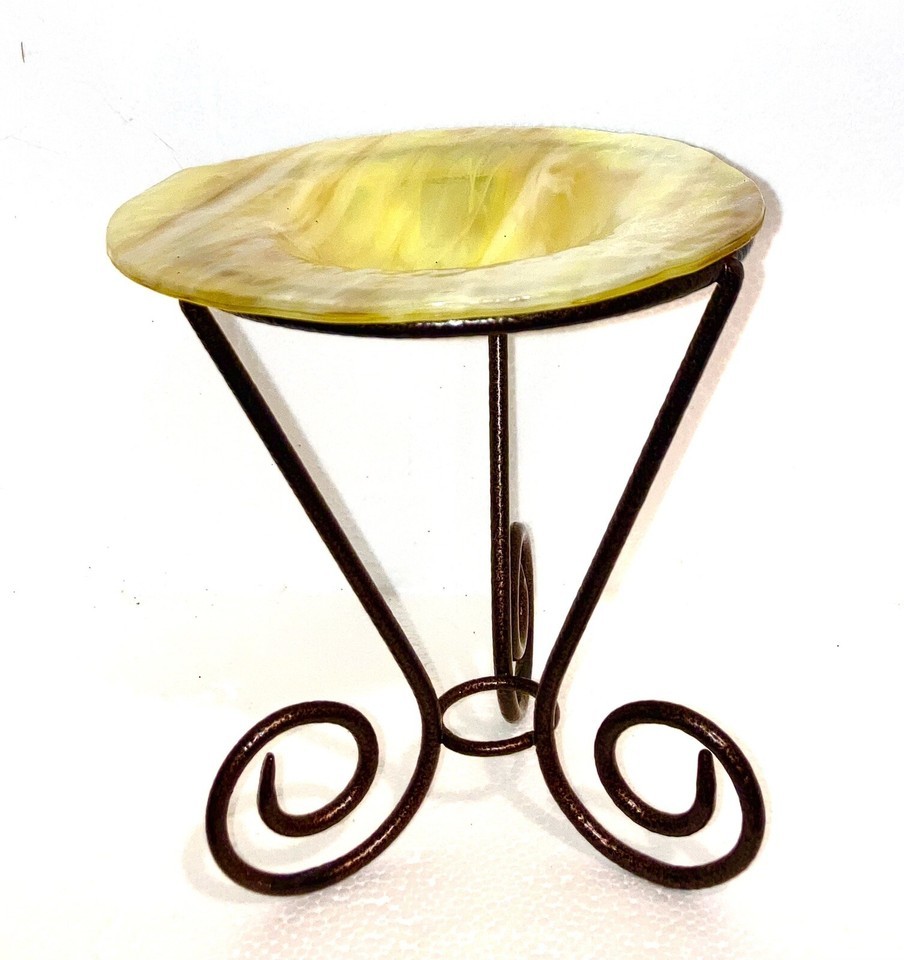 Candle Potpourri Holder YELLOW glass wrought iron Metal Stand 5”