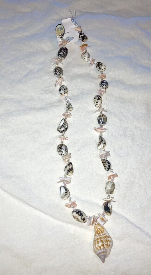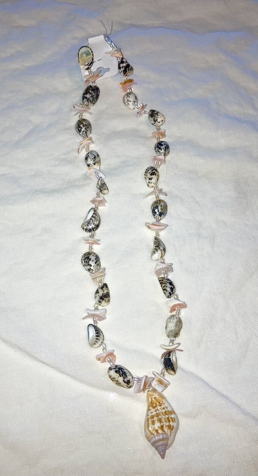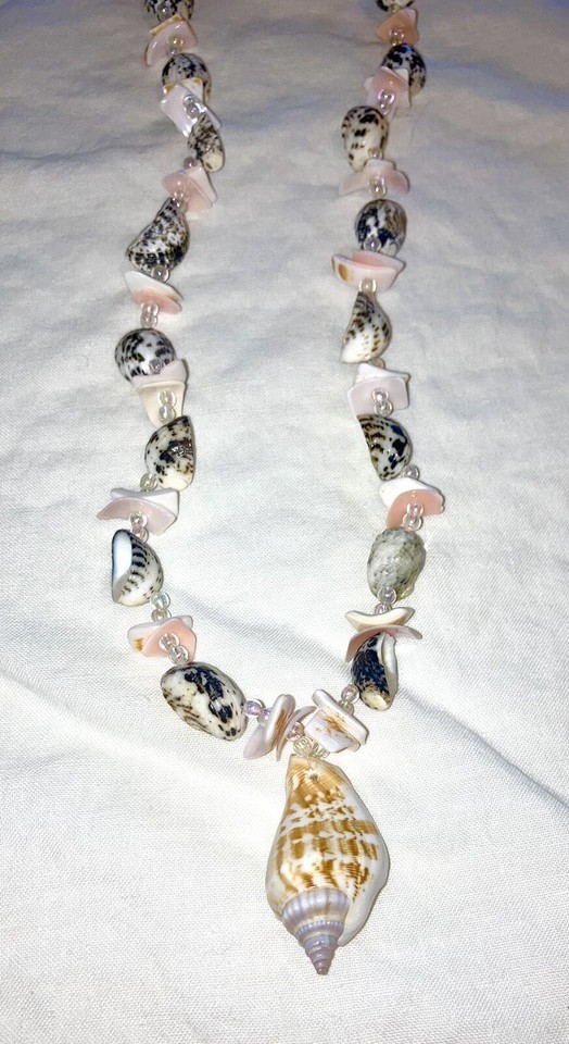 Seashell Necklace genuine shells and seed beads approx 22 inches