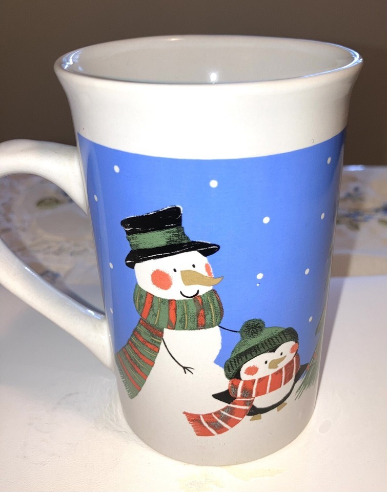 Coffee or Cocoa Mug Snowman Penguins Tree Holiday CHRISTMAS