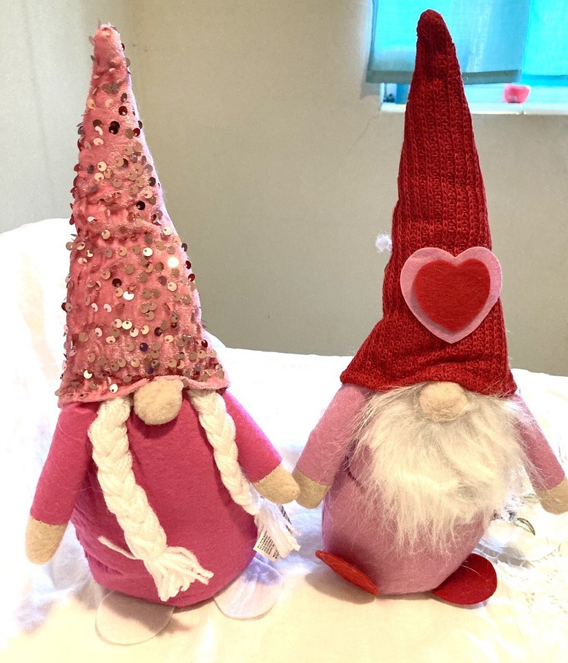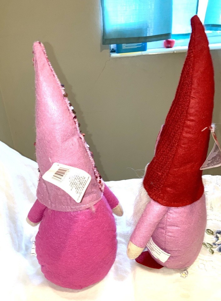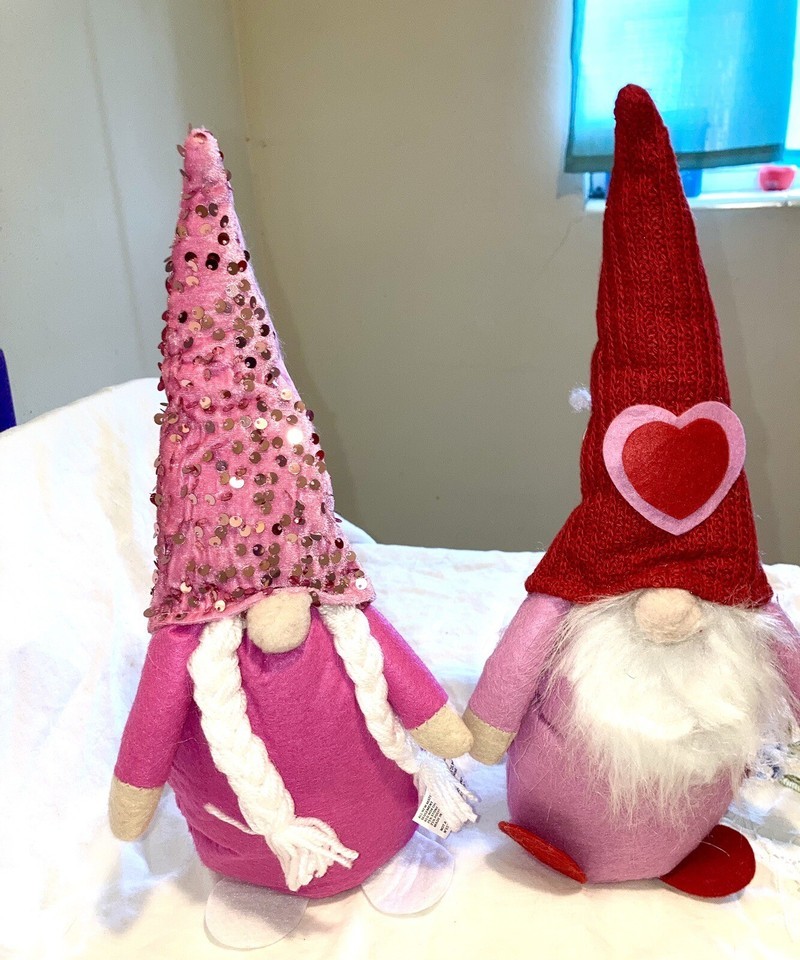 Shelf Sitters Him and Hers 2 Gnomes Sequins Red and Pink 14"