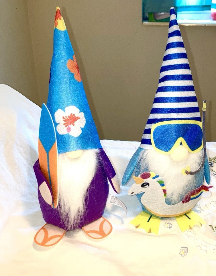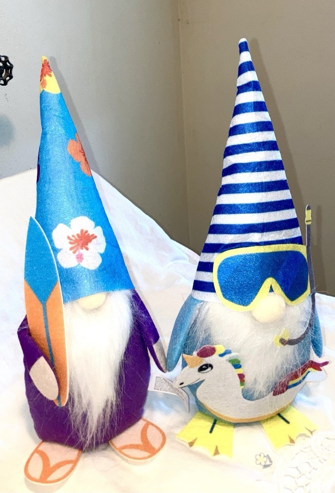 Shelf Sitters 2 Gnomes Plush Decoration Lets Go to The Beach Surfs Up!