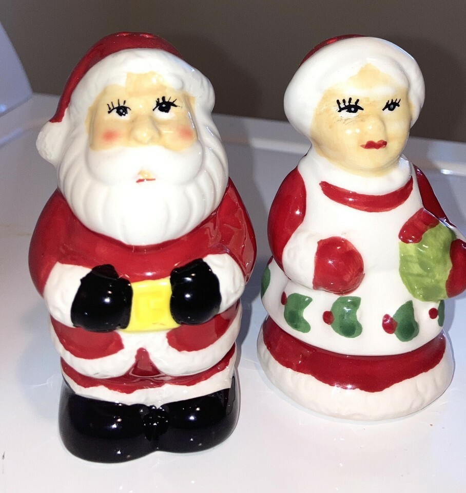 Santa and Mrs. Claus Salt and Pepper Shakers set porcelain CHRISTMAS