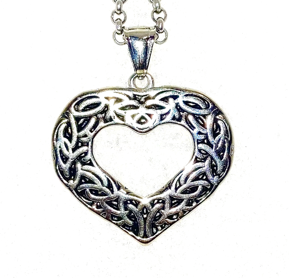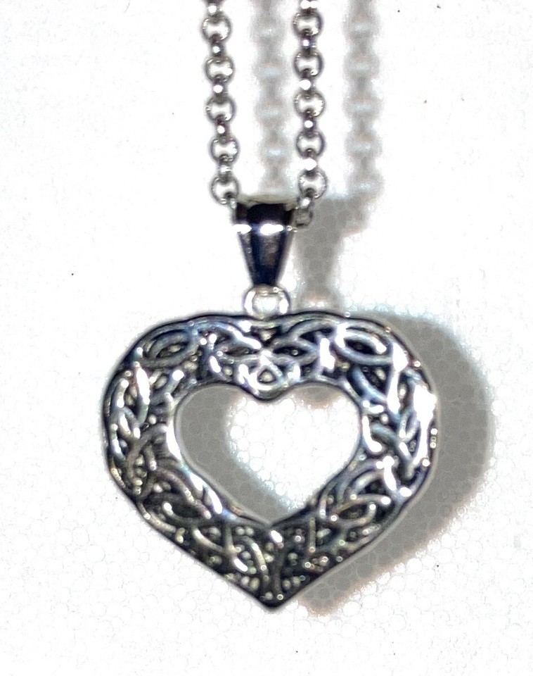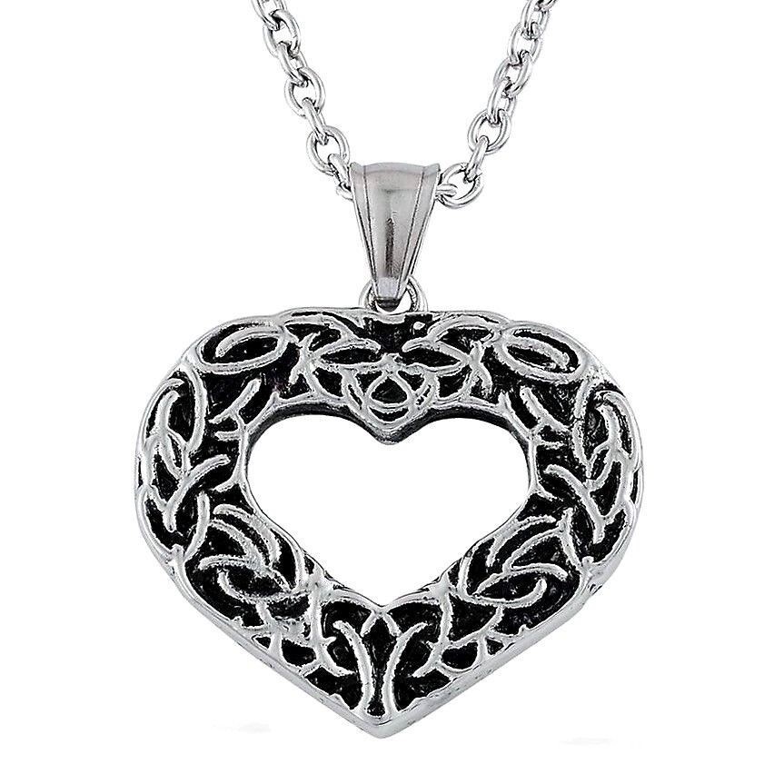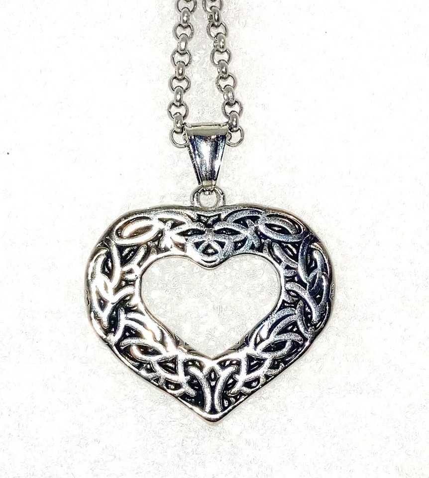 Heart Pendant Byzantine design 18" Chain Stainless Steel NEW