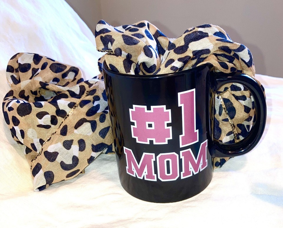 Coffee or Cocoa Mug and Leopard SCARF NUMBER ONE MOM NEW