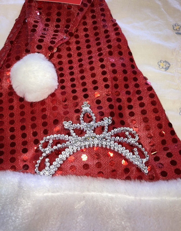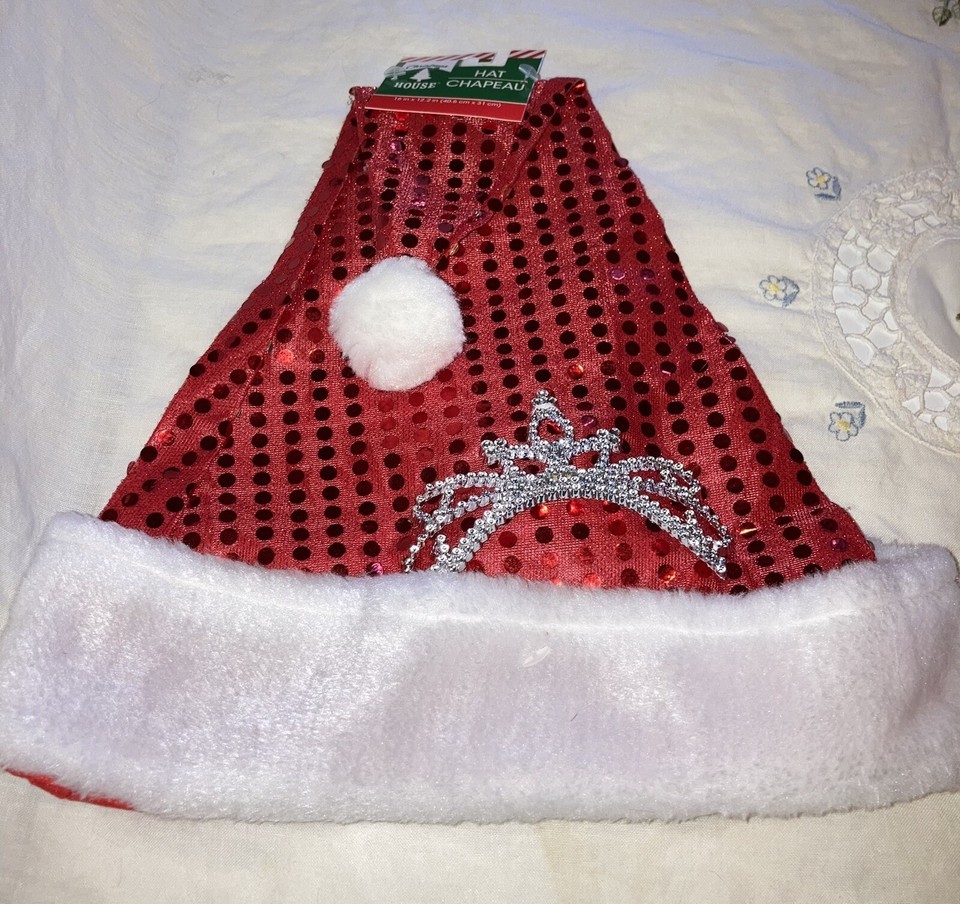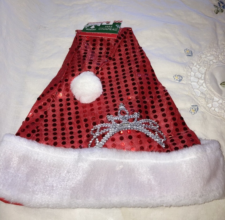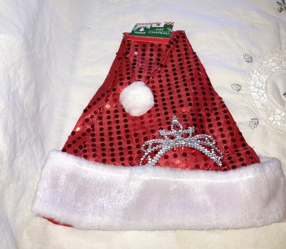 SANTA ELF HAT CAP CHRISTMAS GLITZY CROWN BLING SEQUIN CHRISTMAS