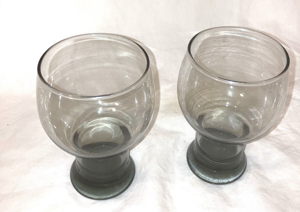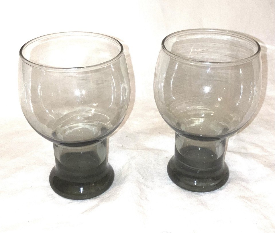 2 Vintage MCM Libbey Stax Smoke Gray Glasses Tumbler libby globe stackable