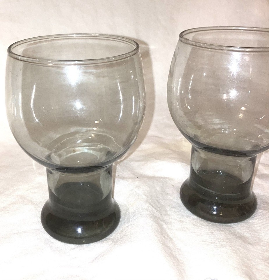 Glasses Tumbler 2 Vintage MCM Libbey Stax Smoke Gray libby globe stackable
