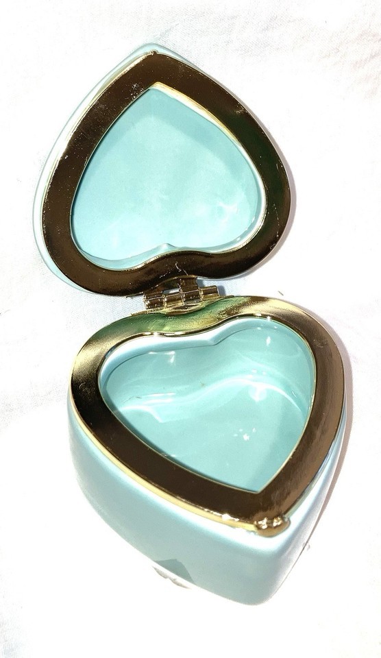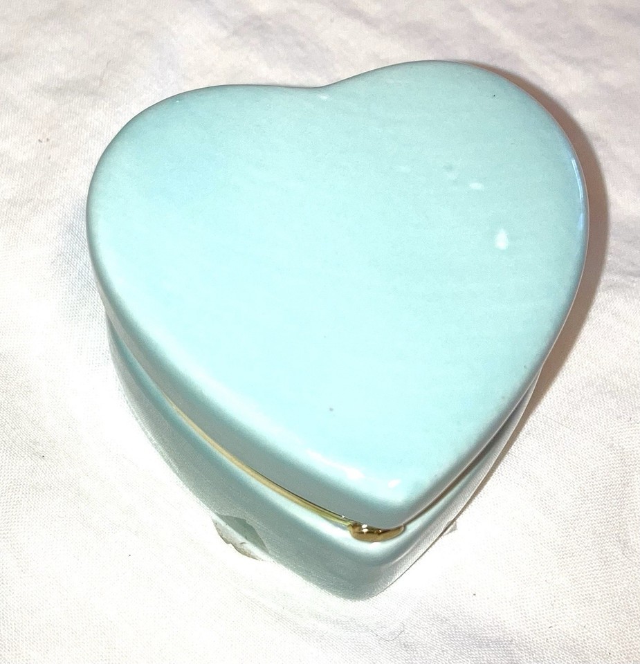 This heart-shaped trinket or jewelry box is a lovely addition to any collection.