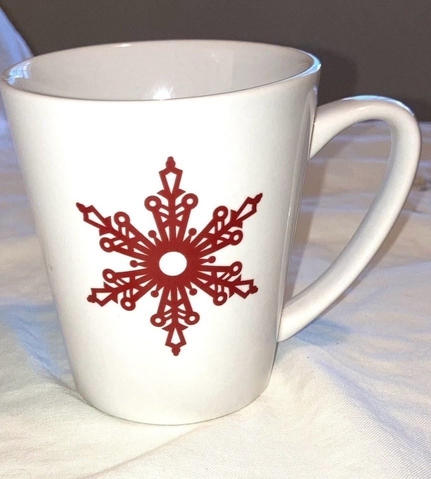 Mug Coffee or Cocoa Modern Snowflake design white RED CHRISTMAS