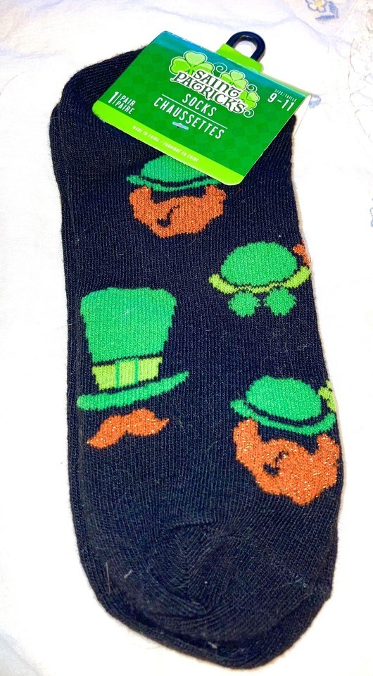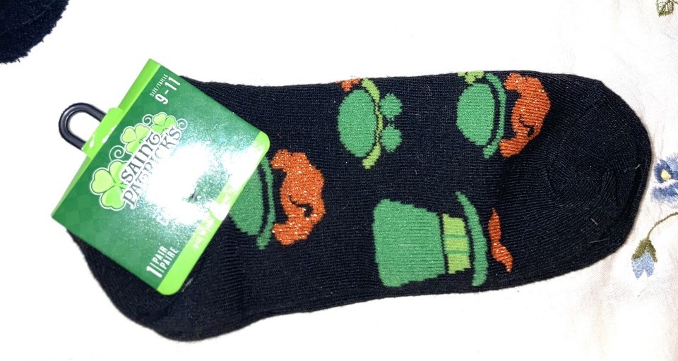 The socks feature a charming leprechaun pattern and come in a bold green and orange color scheme that's perfect for the holiday.
