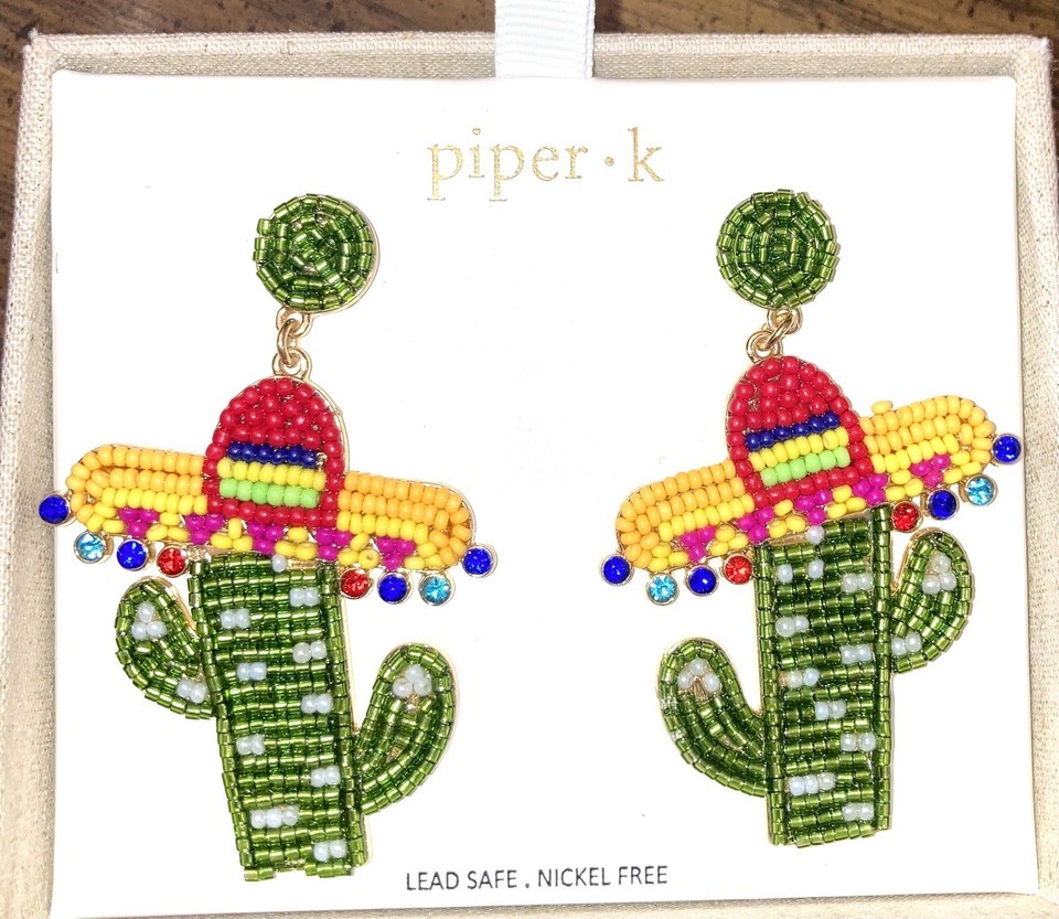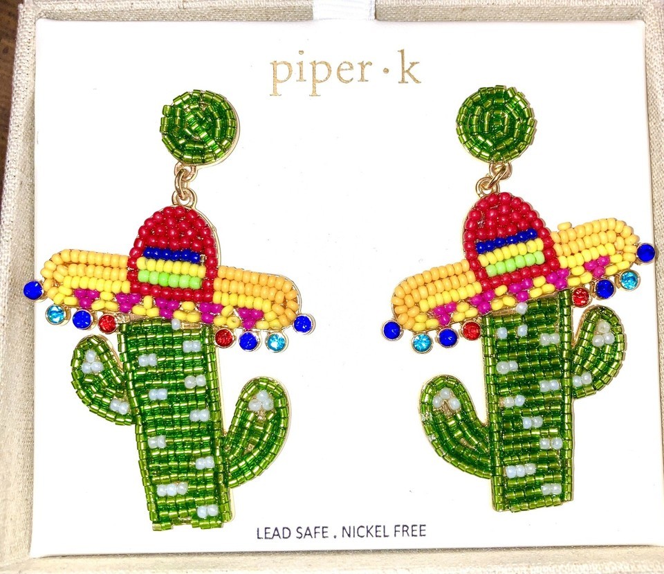 Cactus Earrings Mexican Hat Beaded Glass stones lead safe Piper K New