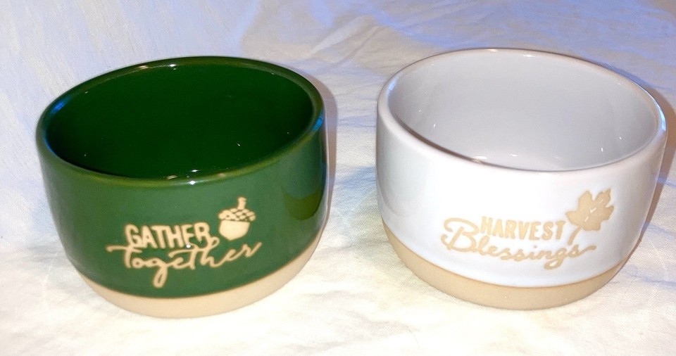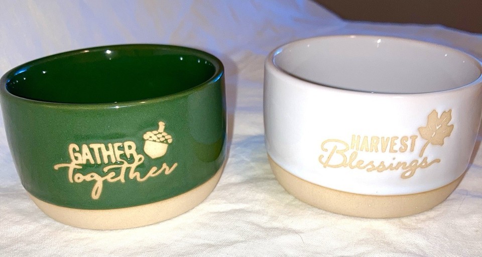 Ramekins Set of 2 Thanksgiving New GATHER TOGETHER HARVEST BLESSINGS