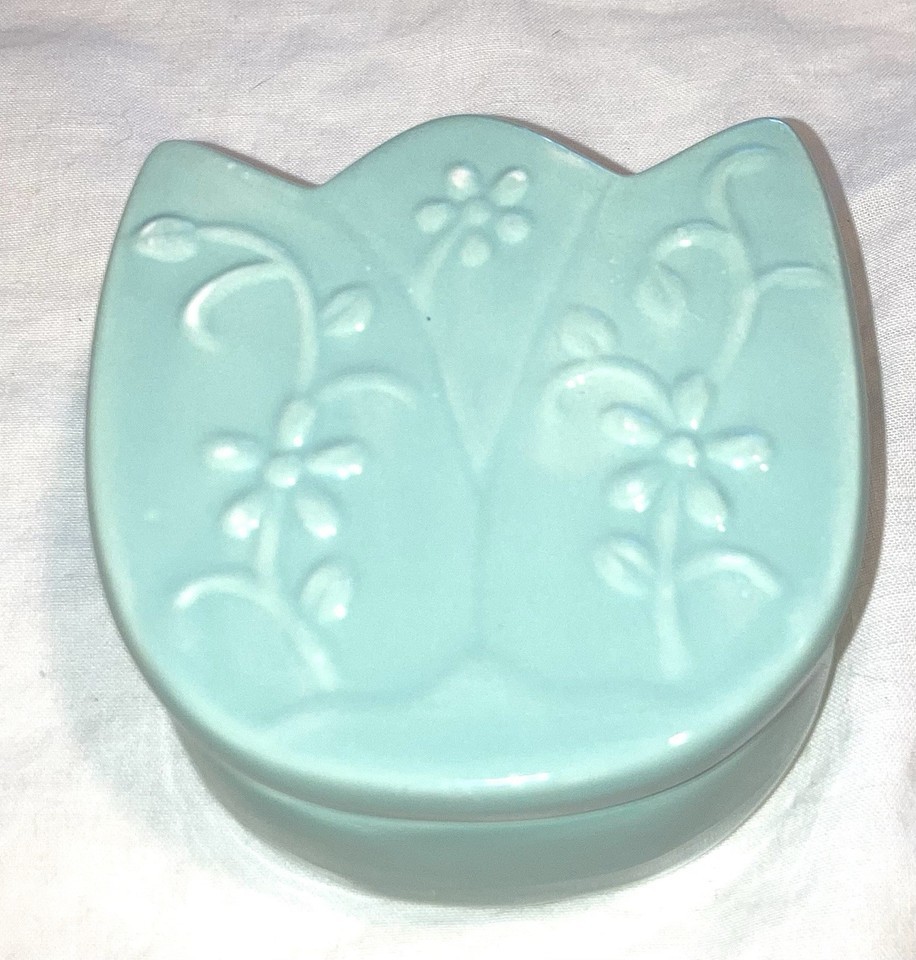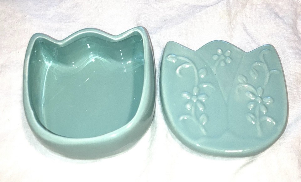 TULIP Shaped trinket or jewelry box PORCELAIN Seafoam Mint Green
