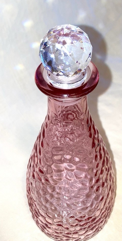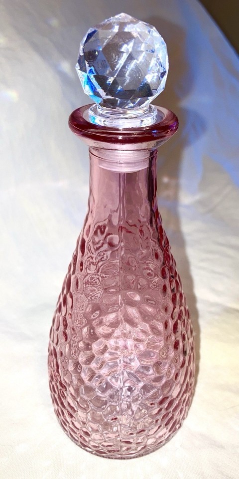 Pink Glass Bottle Decorative Pebble With a cut glass Stopper 7 in tall NEW