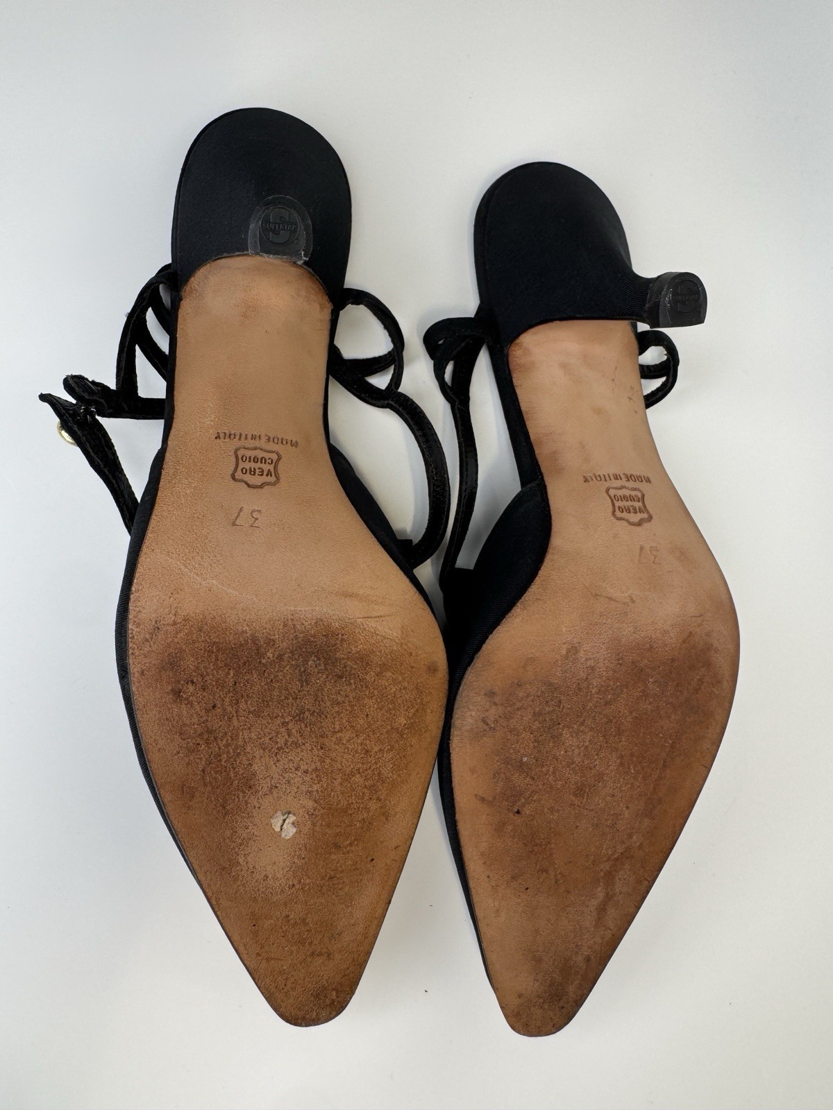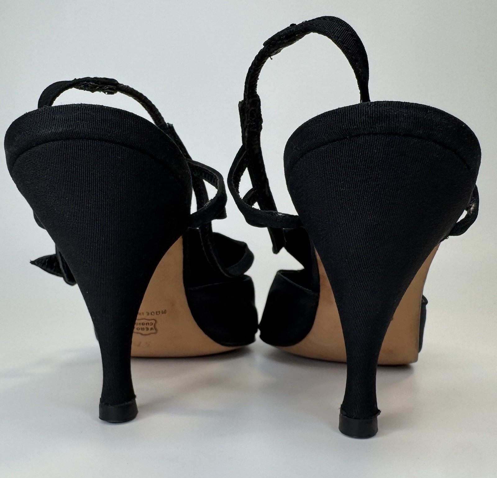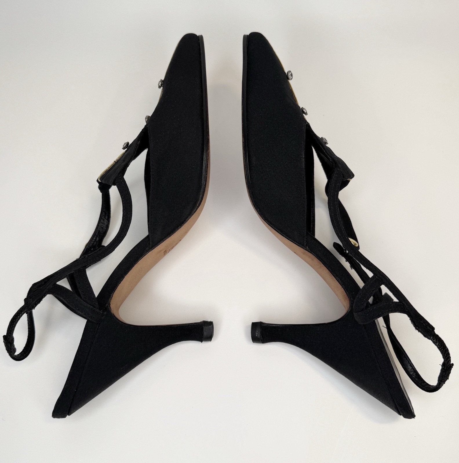 Vintage Manolo Blaknik Size 37 6 Heels Slingback Pointy Black Gold Fabric
