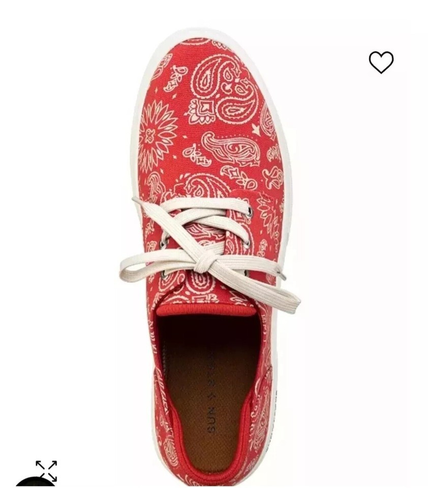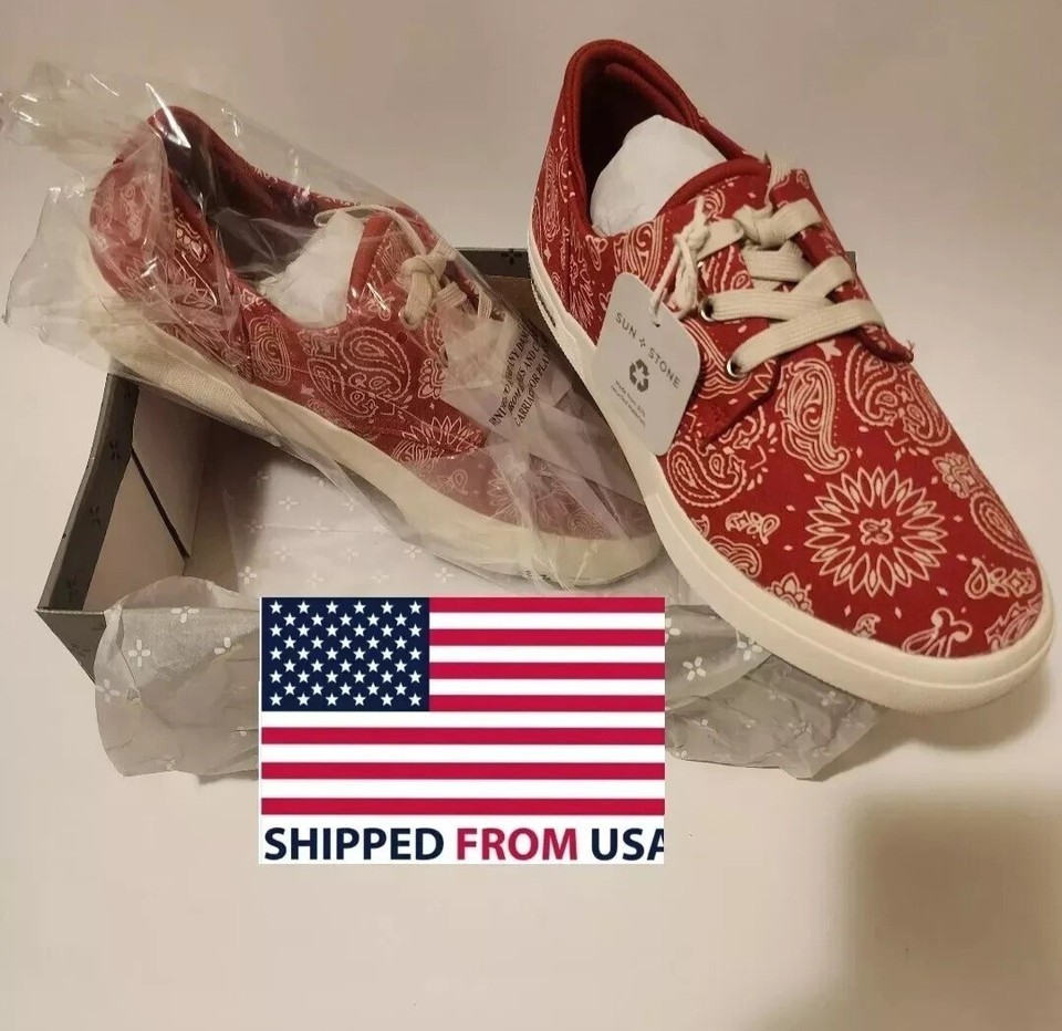 These Me's Shoes Classic Lace-up Casual Sneakers are a stylish and comfortable choice for men. With a solid pattern and red and cream color combination, these sneakers feature lace-up closure, arch support, cushioning, and adjustable fit. Made from 100% cotton upper material and lined with cotton, these shoes provide a comfortable and breathable option for walking and casual wear. The brand Sun+Stone ensures quality and a fashionable touch to your outfit, making these sneakers a versatile and practical choice for everyday wear.