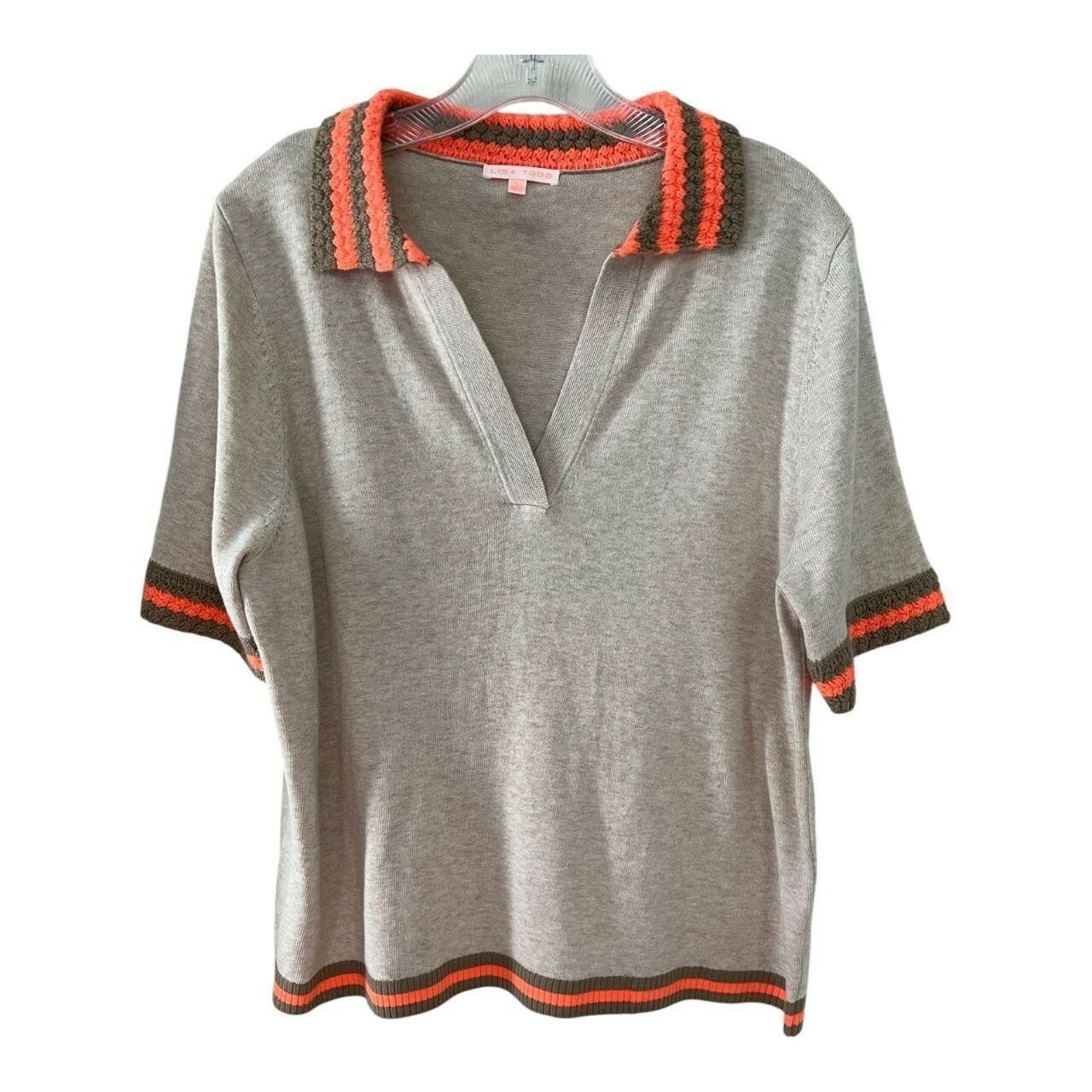 Lisa Todd Knit Polo Top ? Beige with Orange Trim ? Women?s Size L
