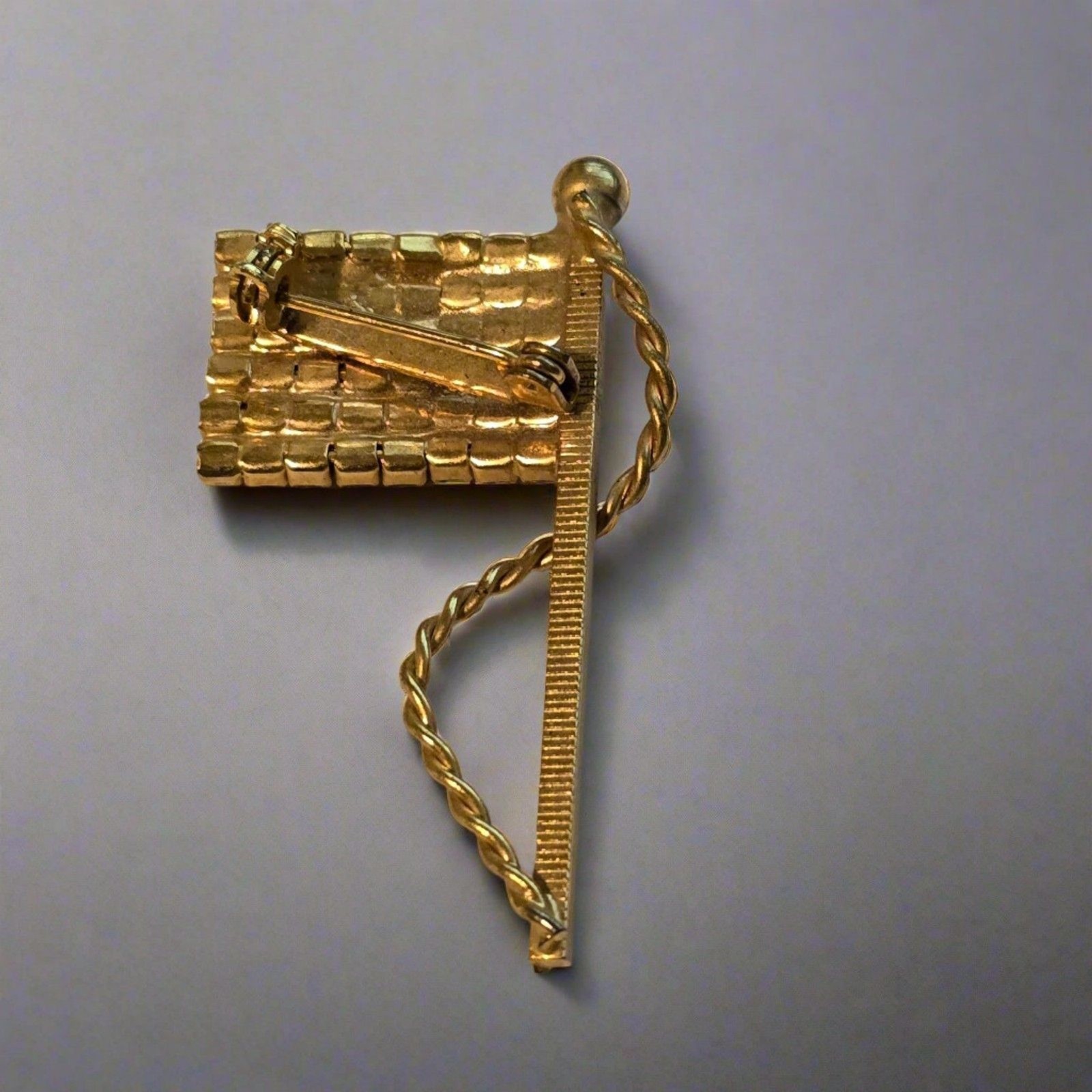 This sparkling vintage brooch features the American flag crafted with red, white, and blue rhinestones set in a gold-tone frame. The textured flagpole is accented with a twisted rope design, giving it added detail and dimension. A beautiful piece of patriotic jewelry, perfect for celebrating the 4th of July, Memorial Day, Veterans Day, or Inauguration events.