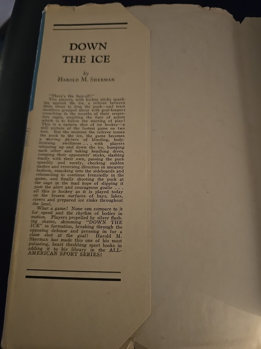 Down the Ice Harold M. Sherman 1932 Goldsmith HCDJ All-American Sport Hockey