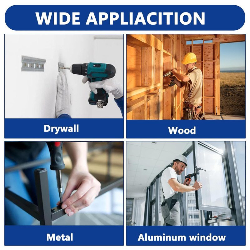 ?WIDE APPLICATION?: Self-Drilling screws are perfect for diverse uses in home, office, and industrial settings. They are commonly employed to fasten metal to wood or metal to metal, making them suitable for electronic products, household appliances, mechanical maintenance, and the connection of wall beams.