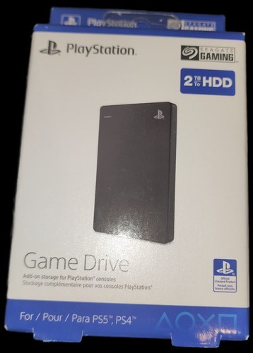 Enhance your gaming experience with the Game Drive, a portable external hard drive designed to compatibility with Sony PlayStation 4 and 5. This Seagate drive offers a storage capacity of 2 TB, enabling you to store all your favorite games and media files. Its sleek black color and compact design make it easy to carry around, making it perfect for gamers on the go.