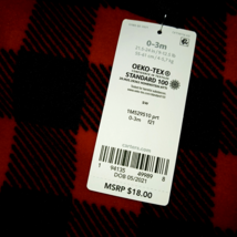 THIS IS A CUTE CARTER'S INFANT ONE-PIECE RED/BLACK PLAID SOFT THIN FLEECE ZIP OUTFIT IN A SIZE 0-3 MONTHS. IT IS NEW, WITH TAGS AND PRICE OF $18.