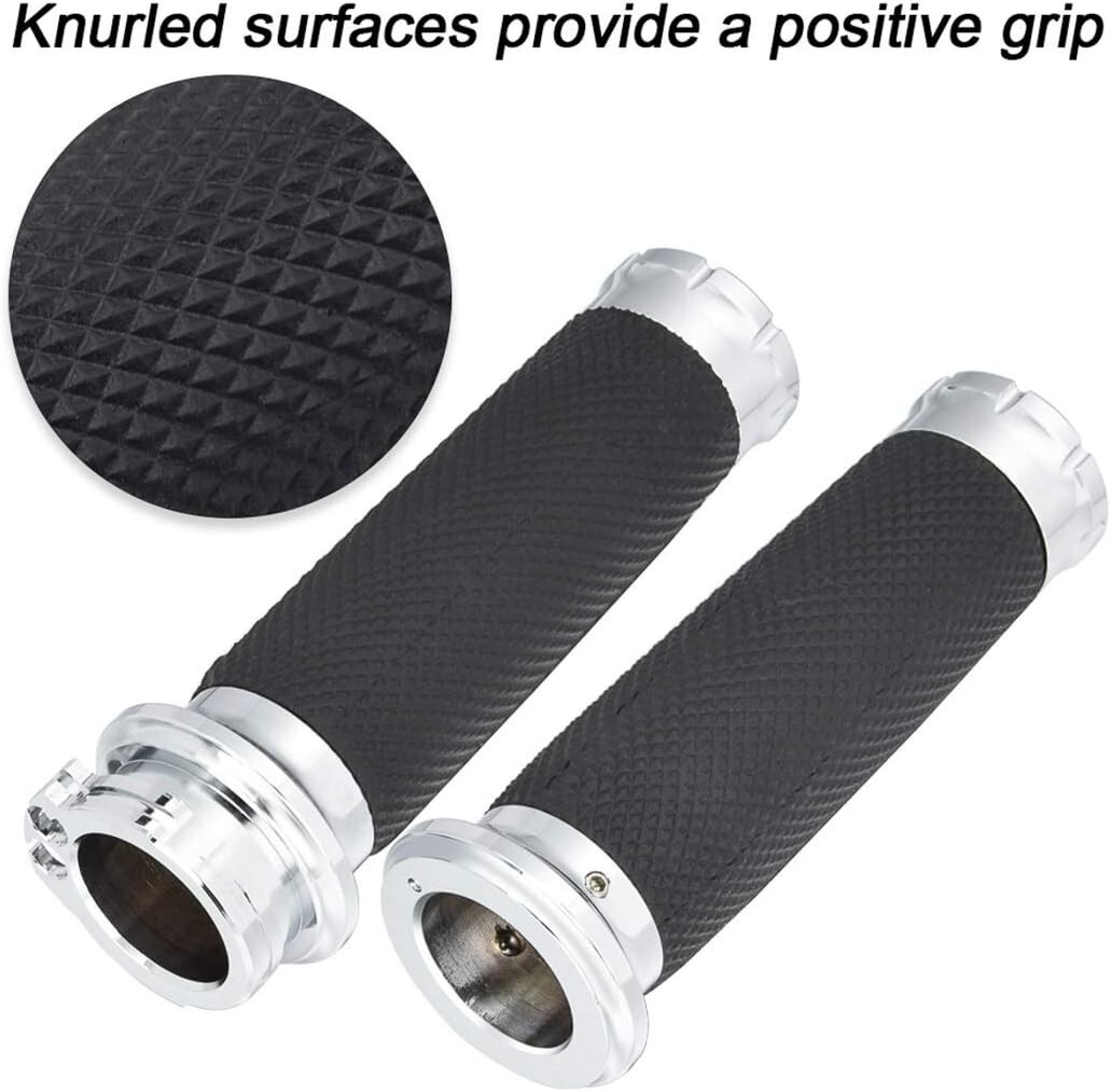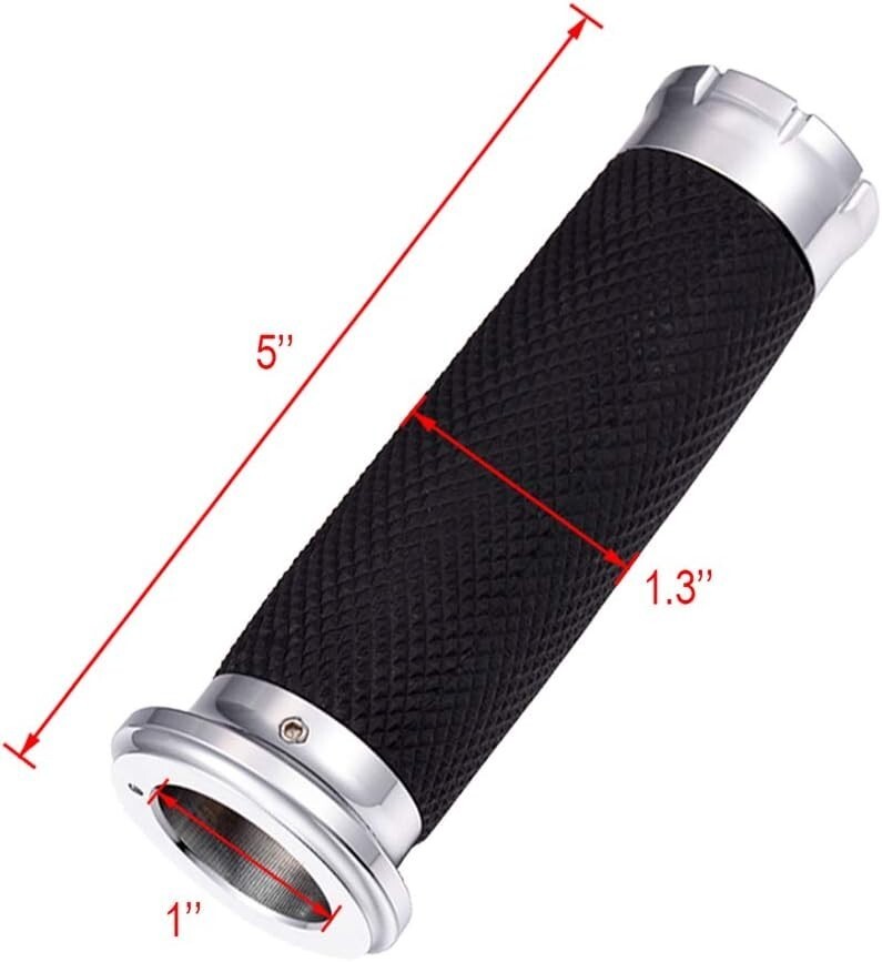 Upgrade your motorcycle with these high-quality, anti-skid handlebar grips compatible with a range of Harley models from 1996 to 2021, including Touring, Sportster, Softail, and Dyna. Crafted from durable aluminum and rubber, these grips feature precision machining and a textured surface for enhanced handling and control. Easy to install with included screws and tools, no modifications are required. Please verify your motorcycle's handlebar size (1 inch only) and model compatibility before purchase, as these grips do not fit 1-1/4 inch handlebars or electronic throttles. Elevate your riding experience with these secure and stylish grips.