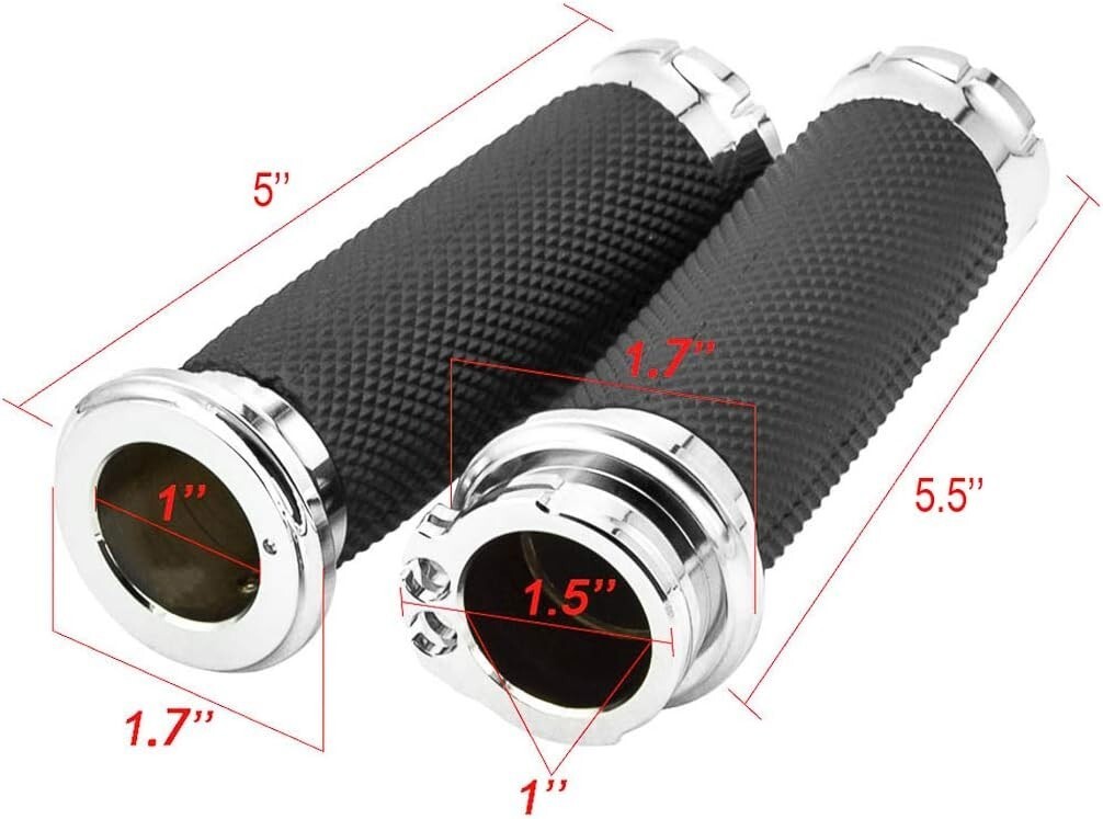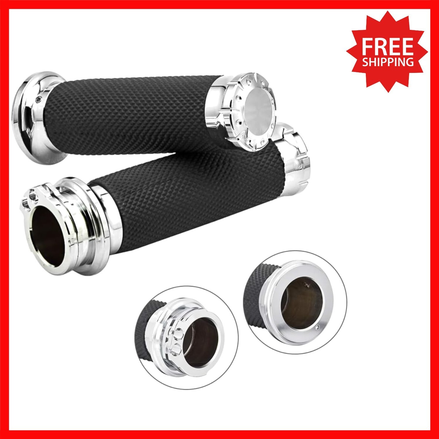 Easy Install 1 Inch Chrome Handlebar Grips - Compatible with Harley Davidson