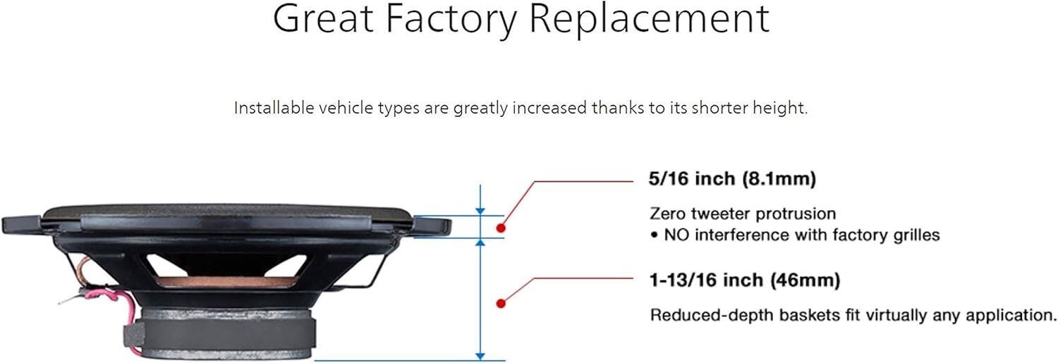 Upgrade your car audio with the JVC Mobile drvn DF Series 6.5-inch coaxial speakers. Engineered with a hybrid surround rubber-coated cloth for enhanced mobility, these speakers deliver deep bass and powerful sound reproduction, making them an excellent factory replacement. Designed for easy installation, each pair includes all necessary hardware, wiring, and a universal fit that accommodates most applications with a mounting depth of only 46 mm. Built tough to withstand extreme temperatures, these speakers provide clear sound even when connected to your factory radio. With a peak power of 300W and RMS of 25W, impedance of 4 ohms, and a frequency response from 70Hz to 19kHz, experience high efficiency and detailed audio performance. Their compact, non-protruding tweeters ensure no interference with factory grilles, and their durable construction keeps delivering even in challenging conditions. Elevate your in-car listening today with these reliable and versatile speakers. To ensure fast and reliable delivery, we work with multiple fulfillment partners and suppliers. Depending on availability and location, your order may ship from different warehouses or arrive in packaging that varies from item to item. Tracking details are typically provided shortly after shipment, and customer satisfaction remains our top priority. Please note that due to carrier policies and regional regulations, certain items may not be eligible for delivery to specific states or territories.