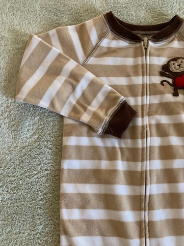 Child Of Mine Boys Brown White Striped Monkey Fleece Long Sleeve Pajamas 3T