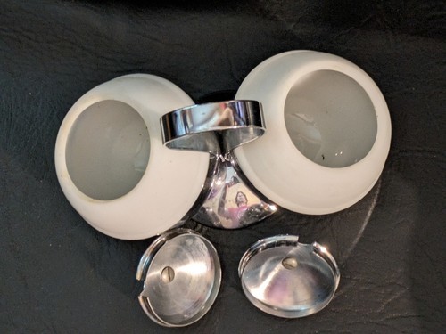 Art Déco Poursuite & Co Chrome Lait Verre Double Condiment Bols Serveur Cuillère