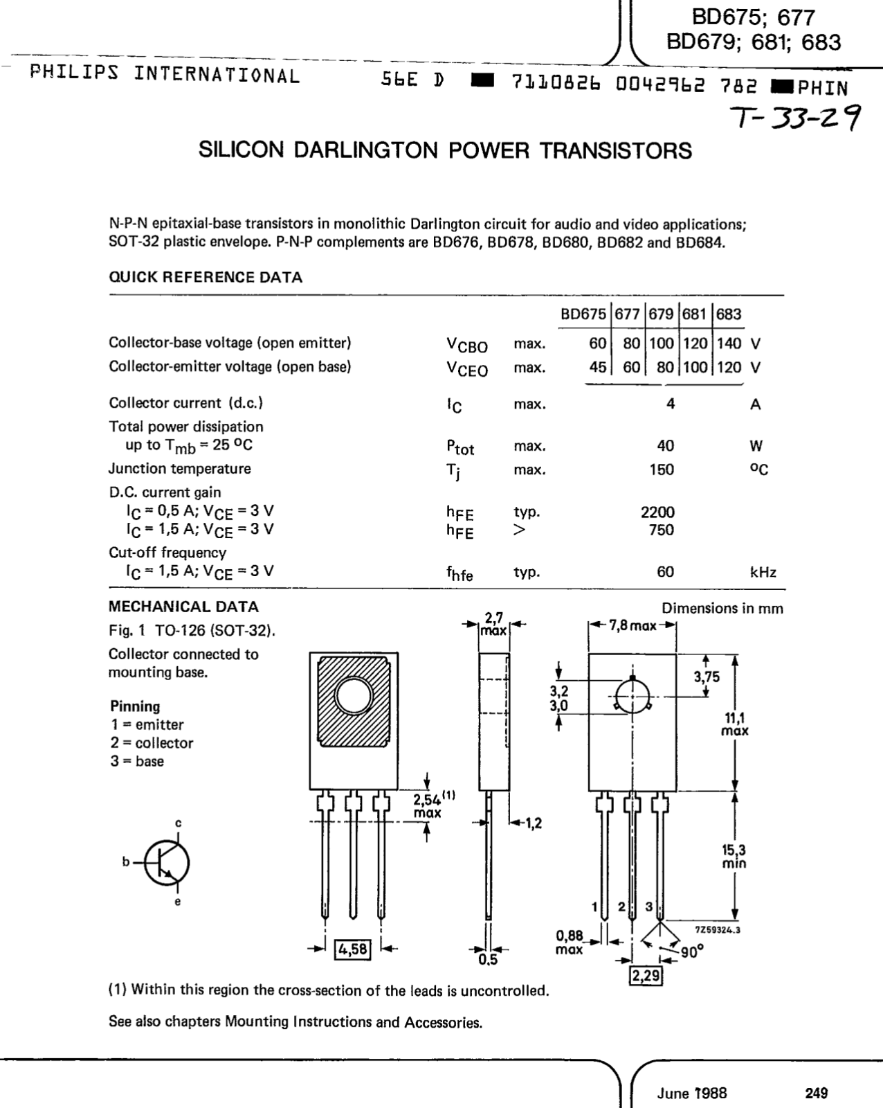 5PCS BD675 Philips NPN Darlington 45V 4A 40W and 50 similar items