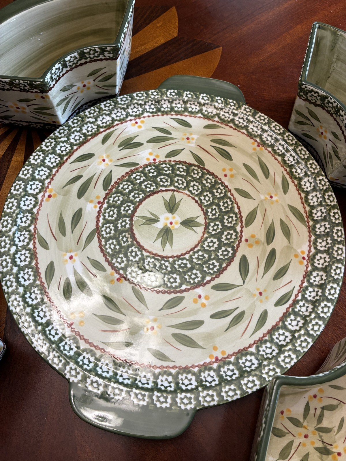 old world green temp-tations presentable ovenware by tara 6 pc serving set