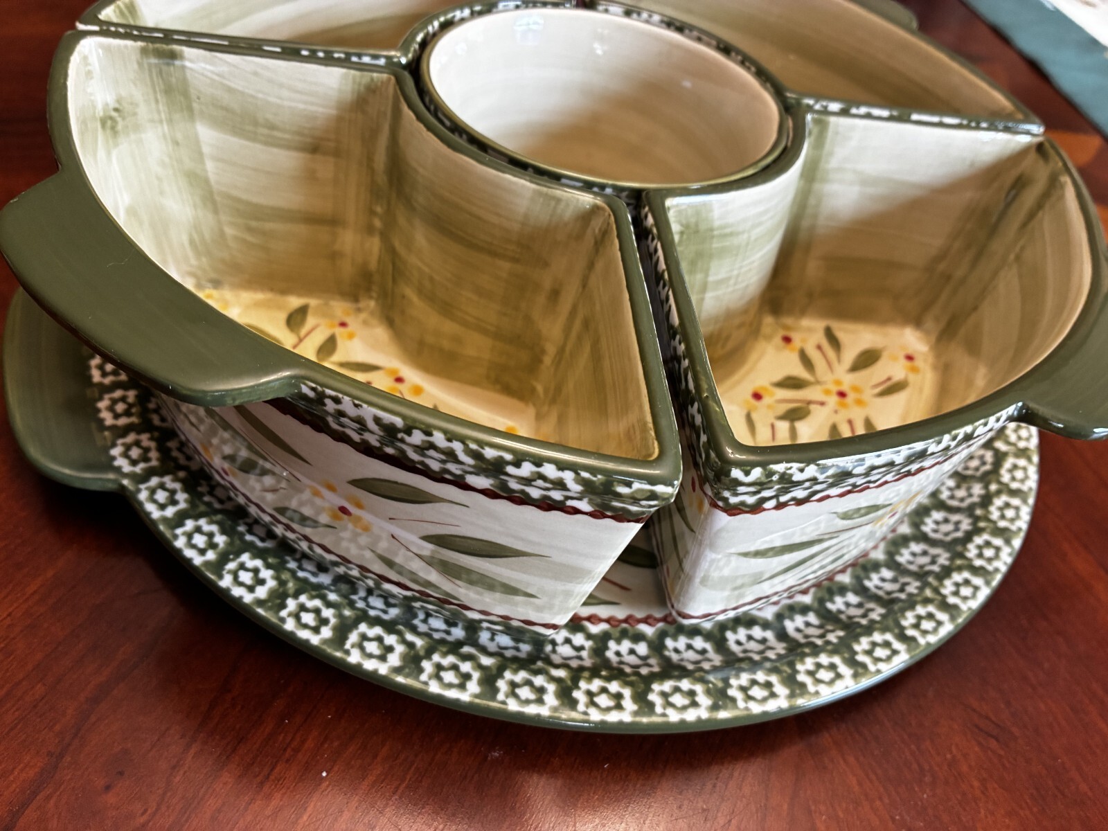 Tray & 4 Containers/Serving platter & 5 serving dishes |
