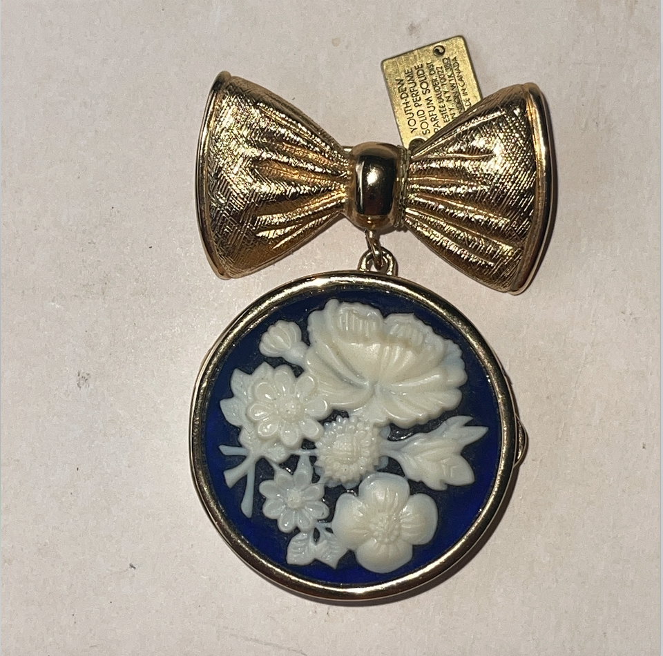Estee Lauder "Flower Cameo Brooch" With Bow 2005 Youth Dew Solid Perfume