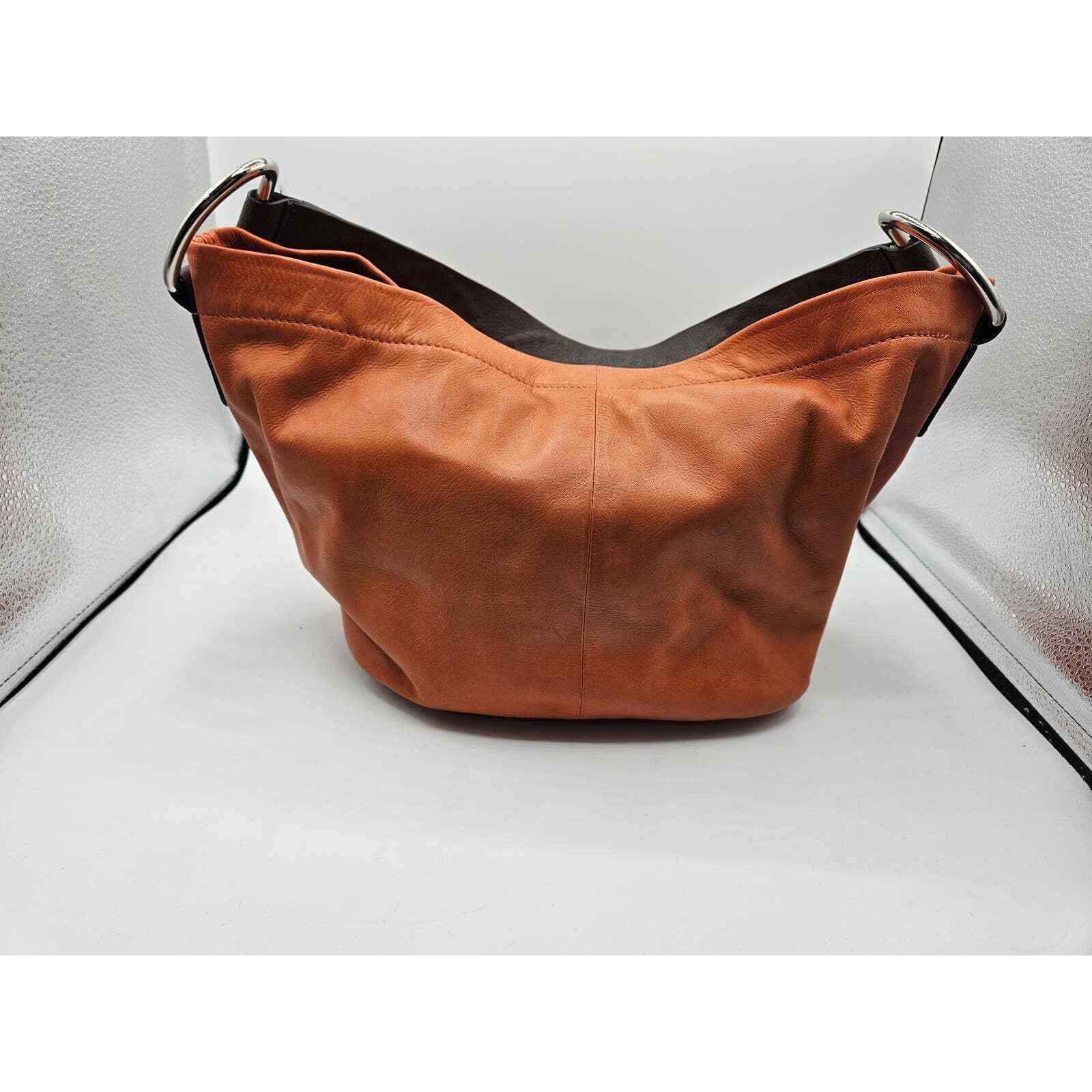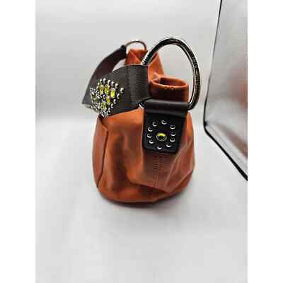 Gianni Bini Womens Zip Top Orange Solid Leather Shoulder Handbag Jewel Strap
