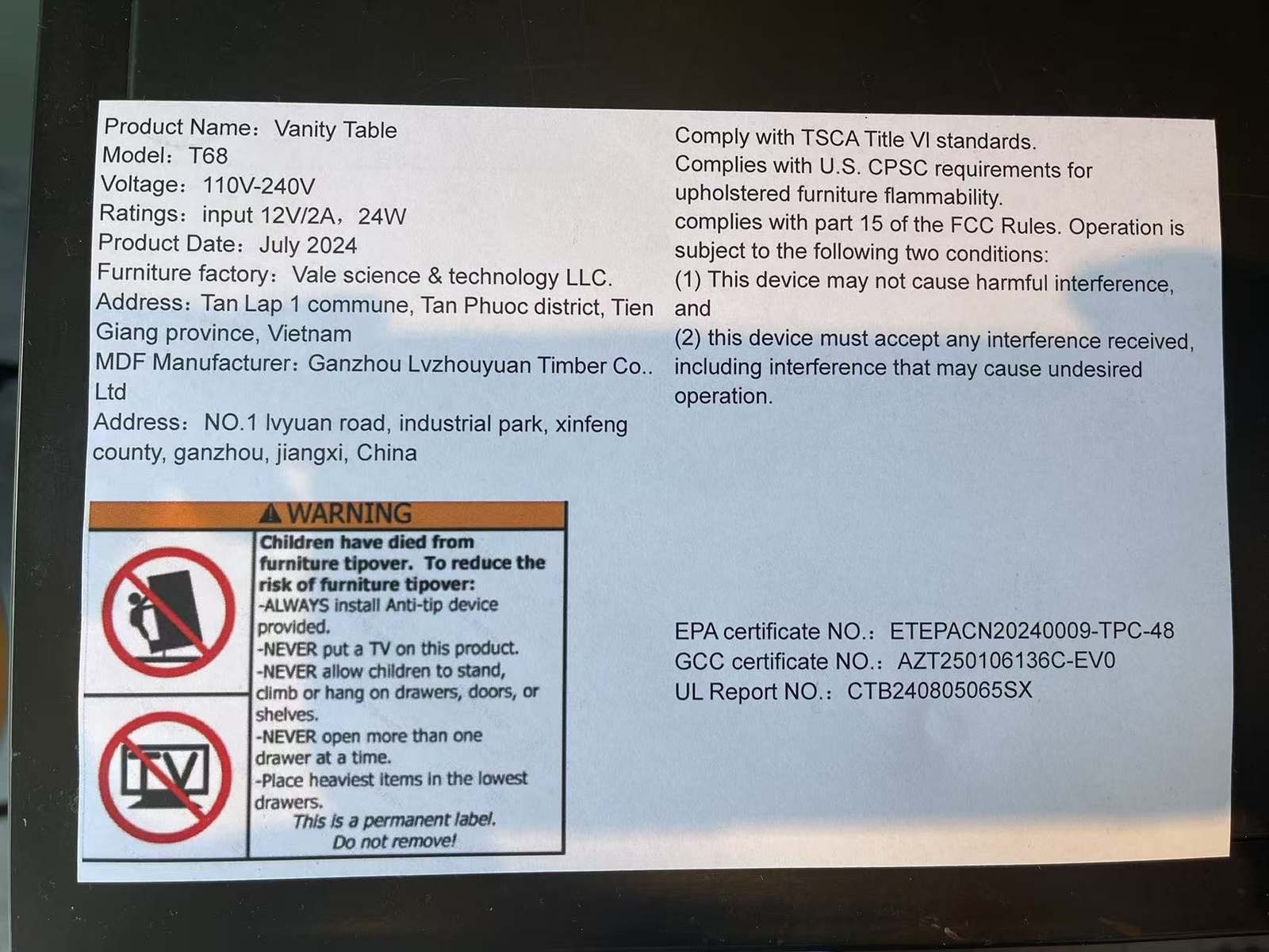 [Precautions]: There are about 40 boards composing the dressing table. Assembly is a time-consuming task that is expected to take 2-3 hours. 2. There is no numerical lable on each board, so it may be challenging to identify each board according to the image in the installation manual. 3. There may be slight sawdust residue on the boards inside the packaging, and if there are very strict requirements for it, it may not be suitable for you.