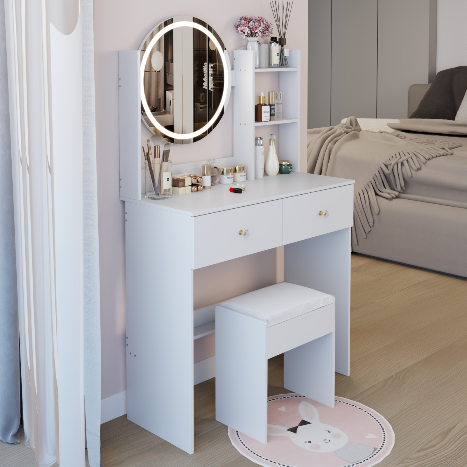[Including a dressing table and a cushioned dressing stool]: This is a dressing table set, which includes a dressing table and a cushioned stool. You will no longer need to make additional purchases. This will greatly save you time and delivery costs.