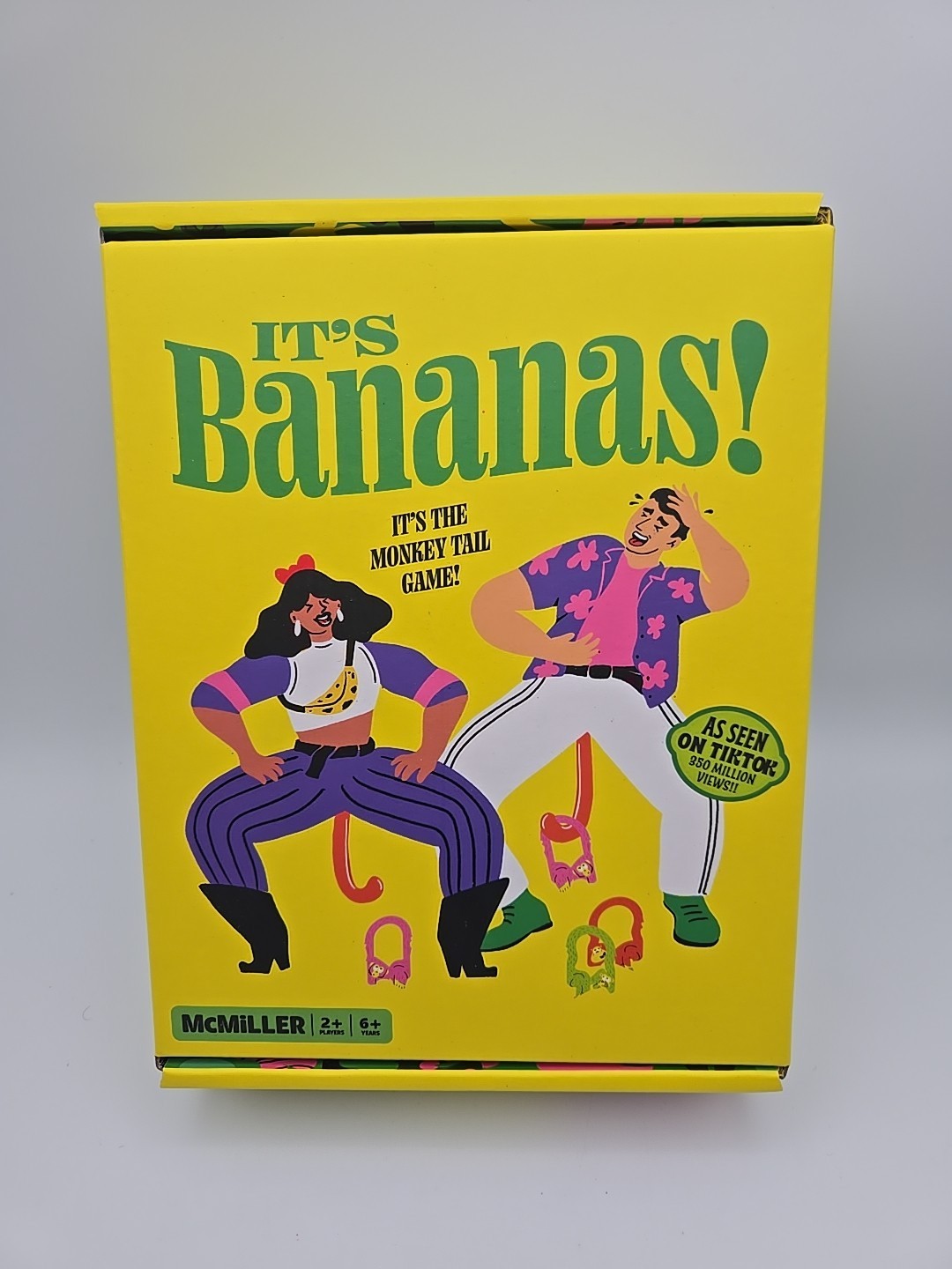 The product is a brand new sealed board game called 'Its Bananas!' by McMiller Entertainment. This game, released in 2019, is designed for 4 players aged 6 and above. With a strategic theme, the game is suitable for both boys and girls. It has been recognized with the Games 100 award and features a friendly character family.