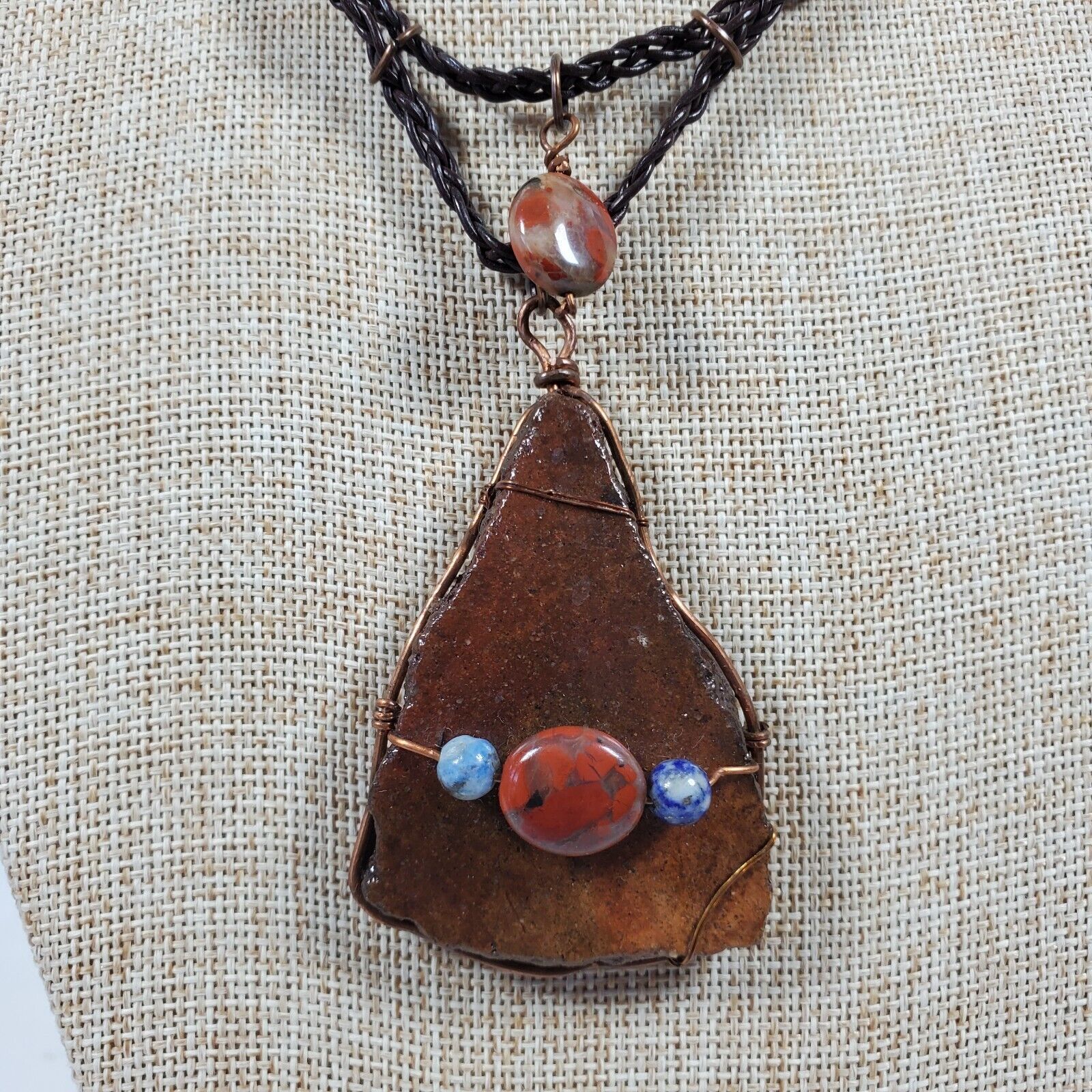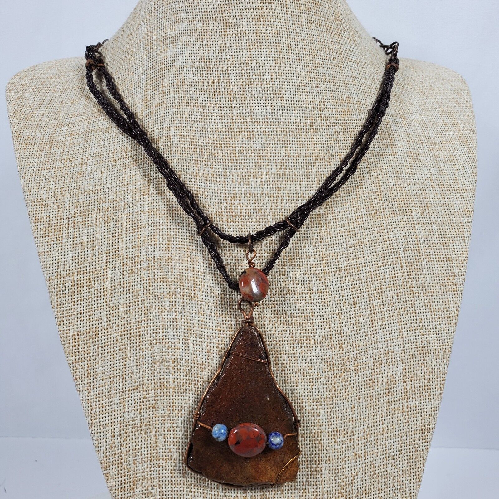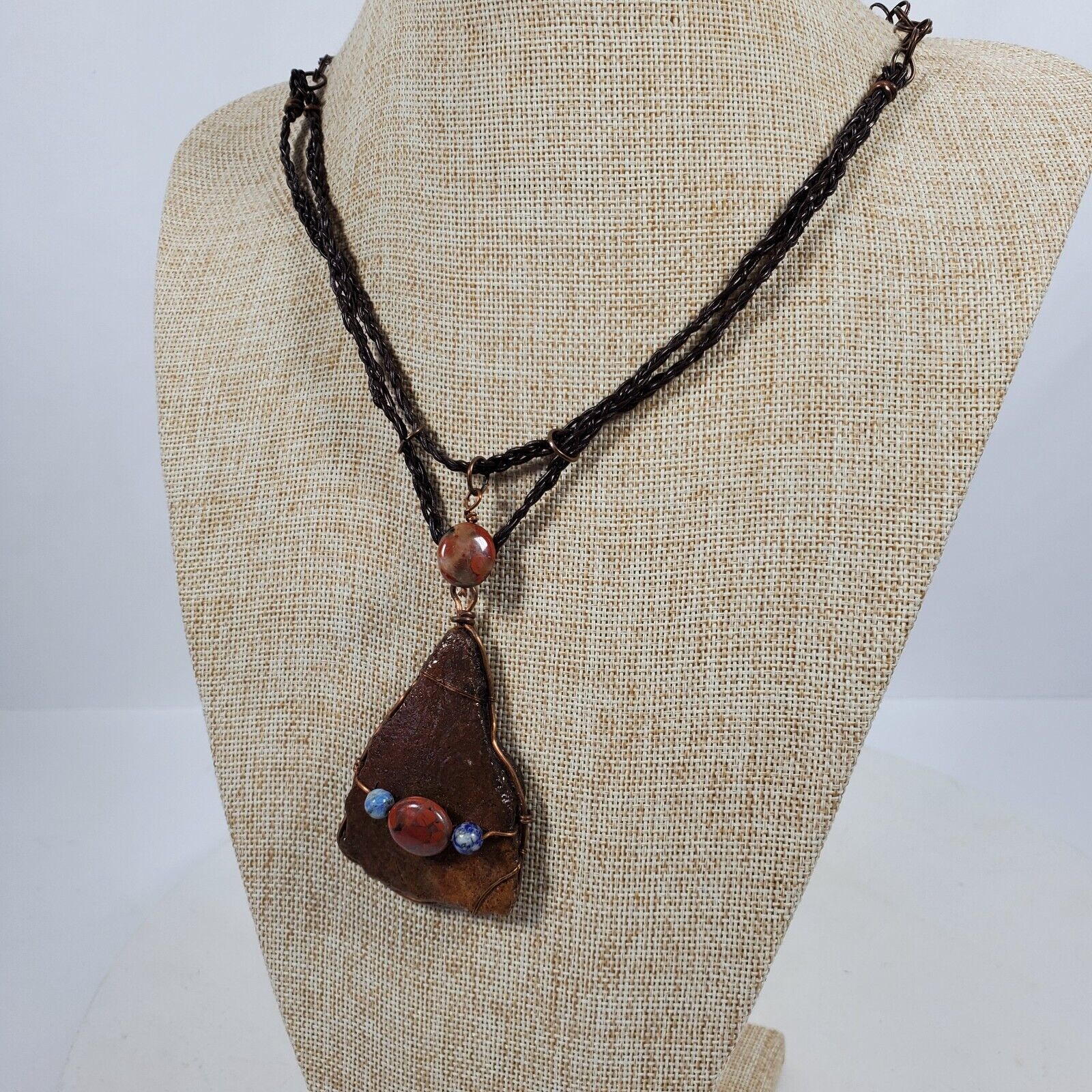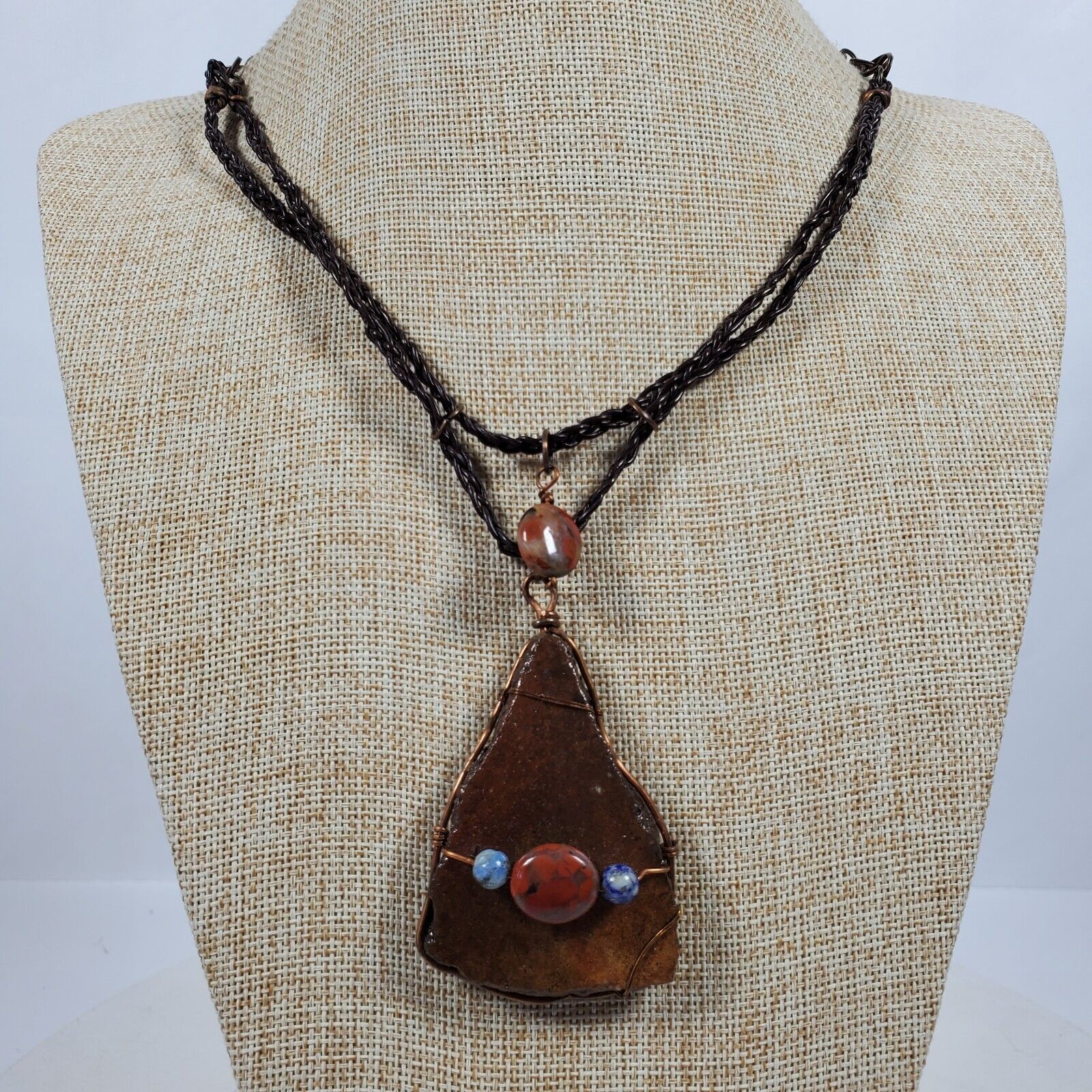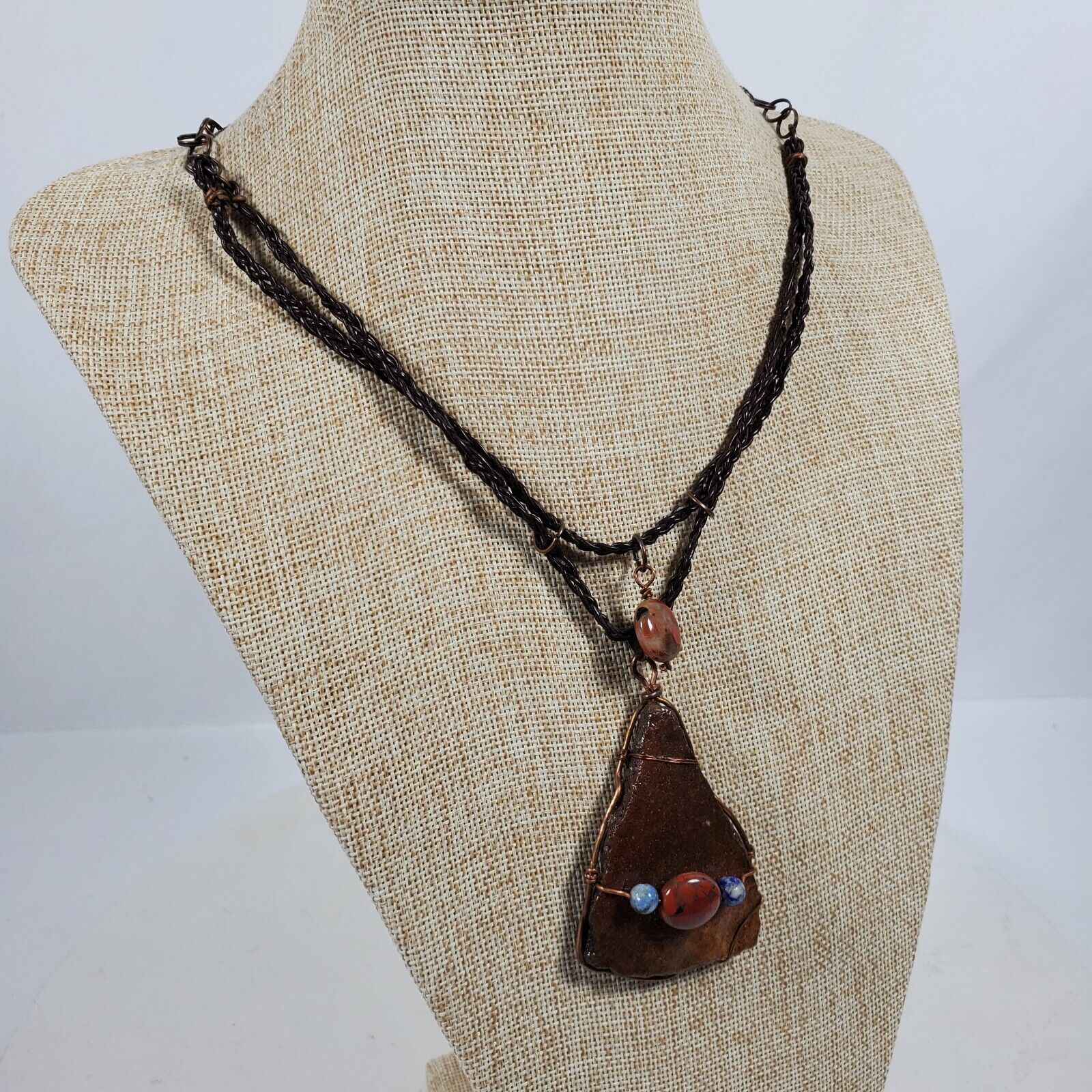 Vintage Handcrafted Wire Wrapped 2.5" Pendant 18" Necklace