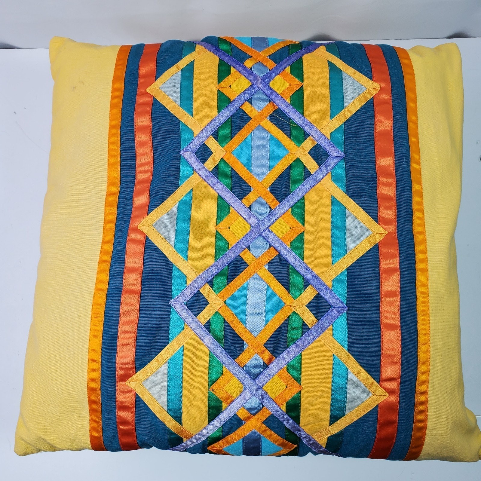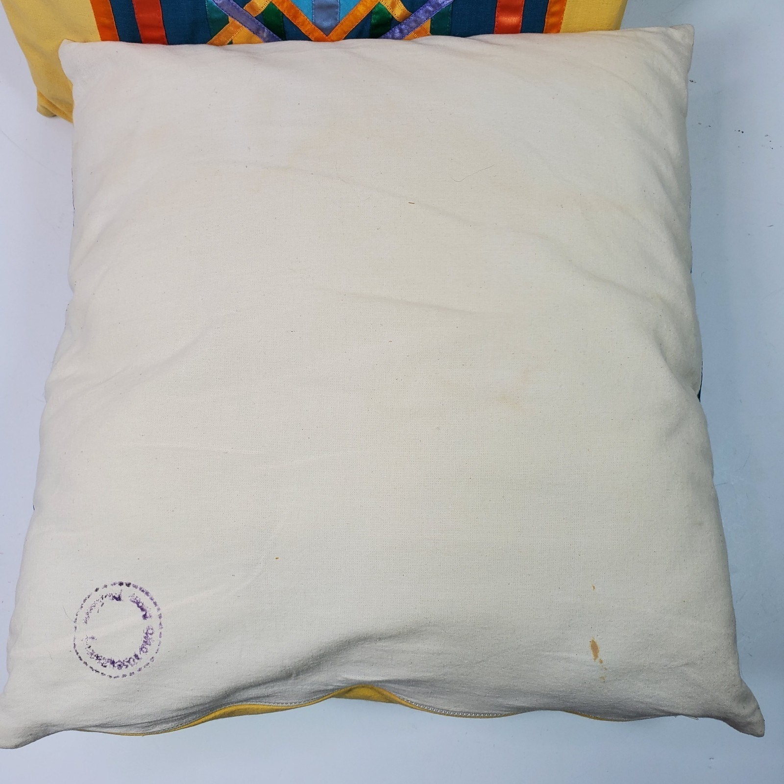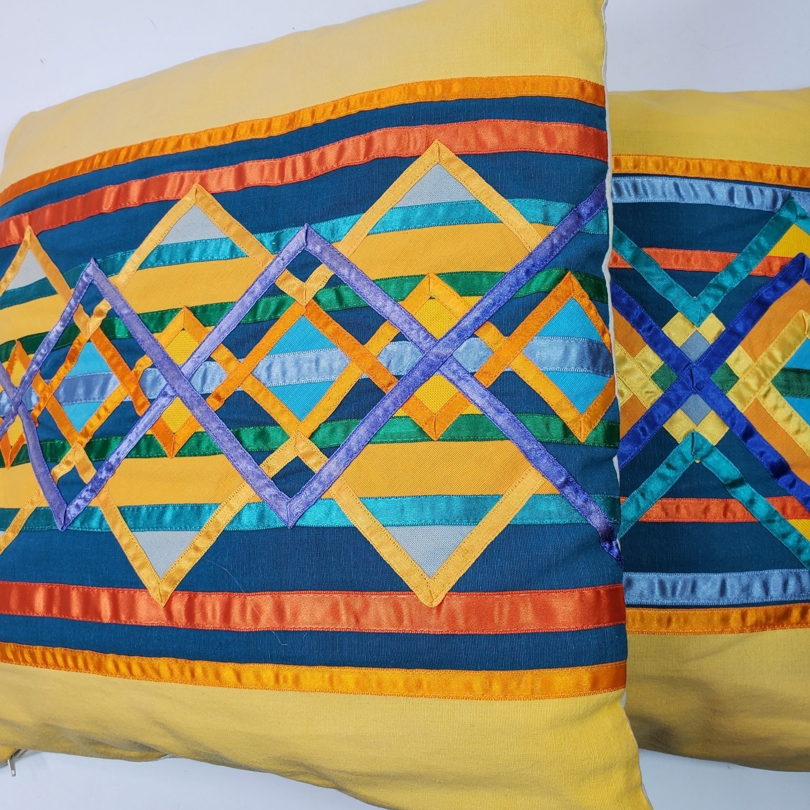Vintage Handmade Mexico 2 Throw Pillows w/ Pillow Inserts Colorful 16x17 Inch
