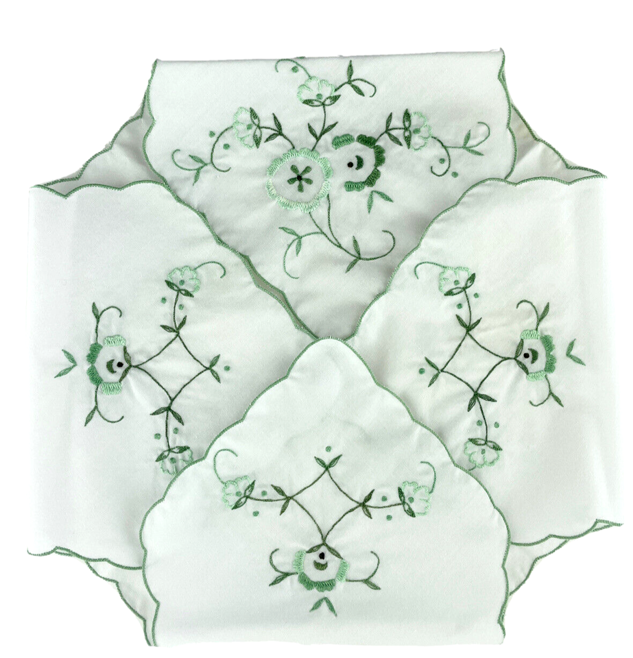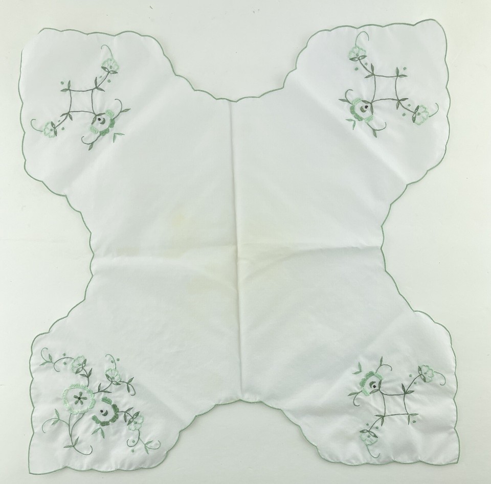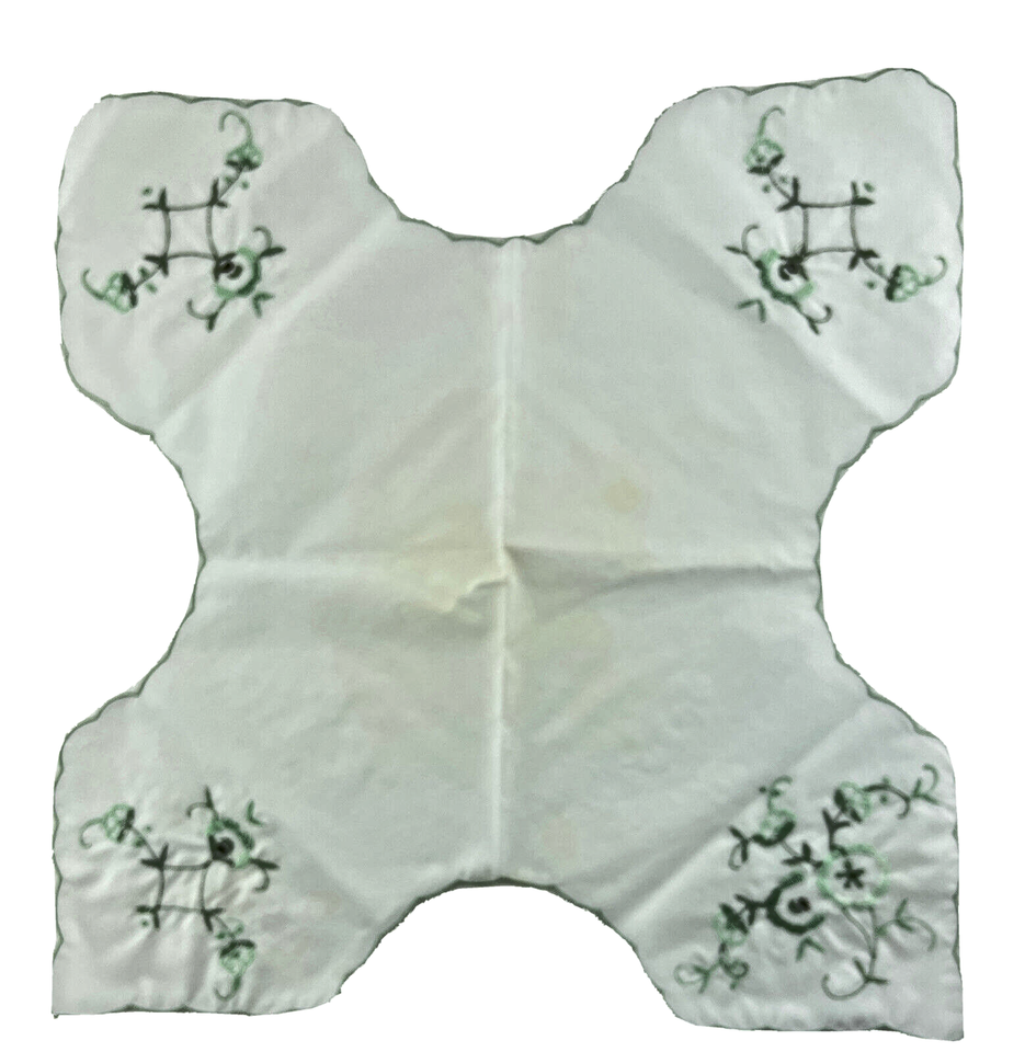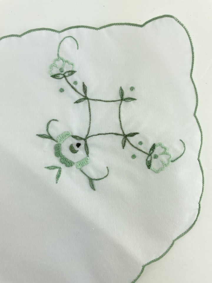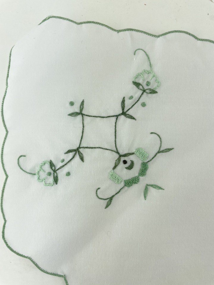 Bread Basket Liner Doily Embroidered Cotton Green Floral Cottage Bread Roll Cozy