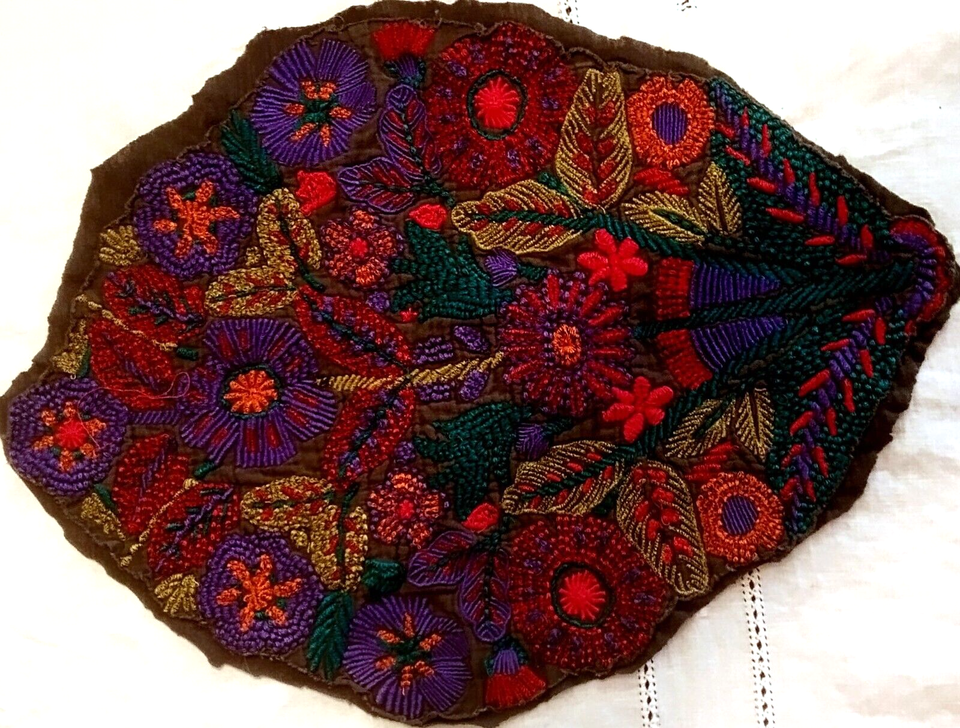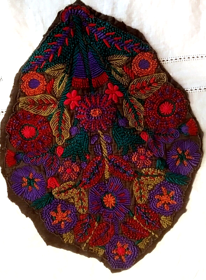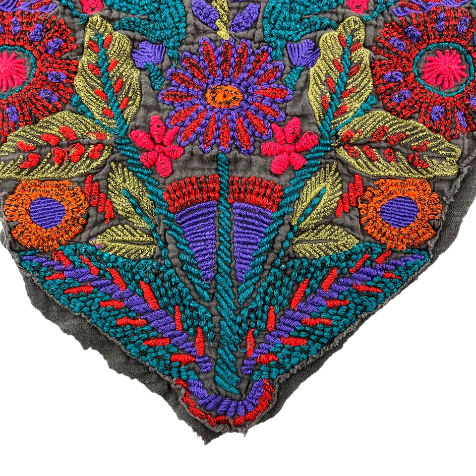 Embroidered Fabric Panel 14 x 10 in. Floral Pink Purple Teal Blue Lucky Brand