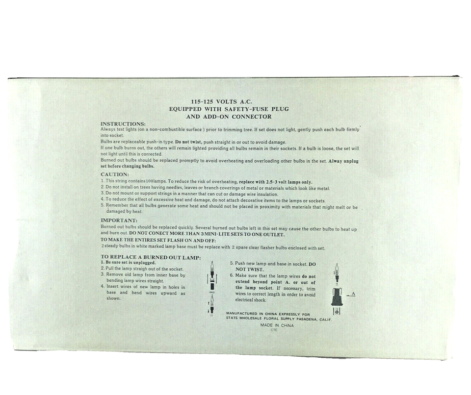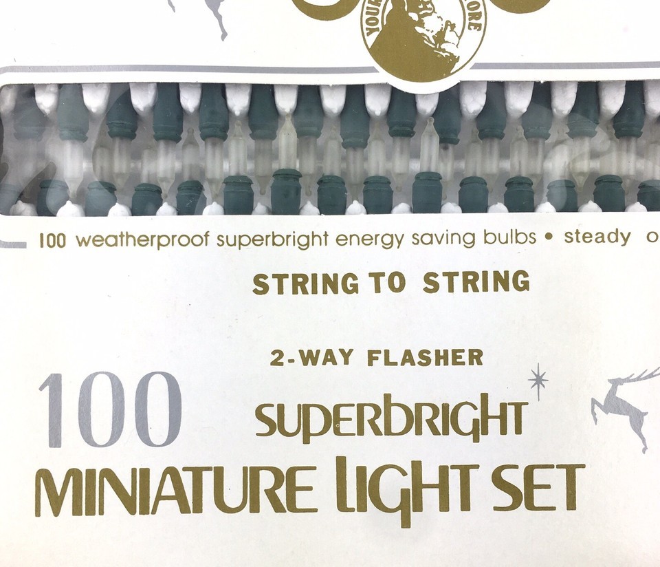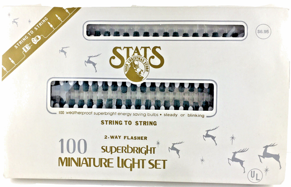 Stats Christmas Tree Light String 100 2-Way Flasher Superbright Mini Vintage