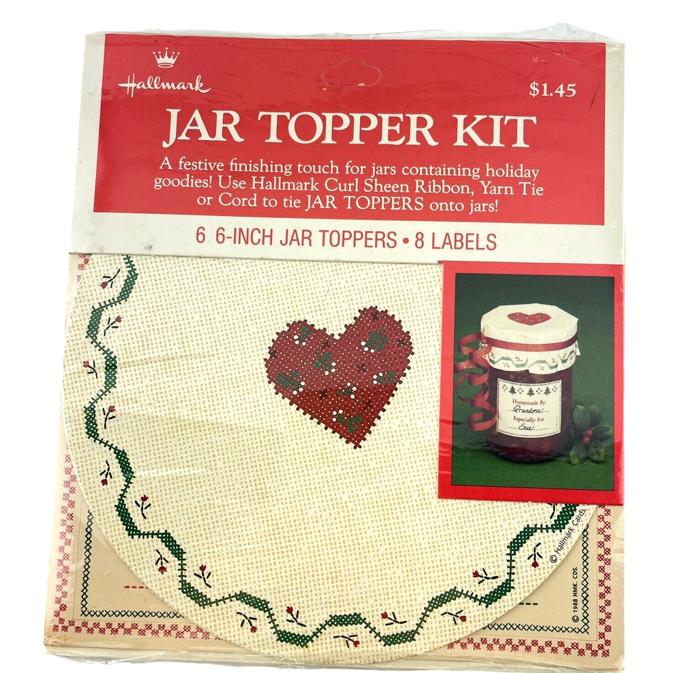Hallmark Jar Topper Kit Set of 6 with 8 Labels Heart Center Floral Border