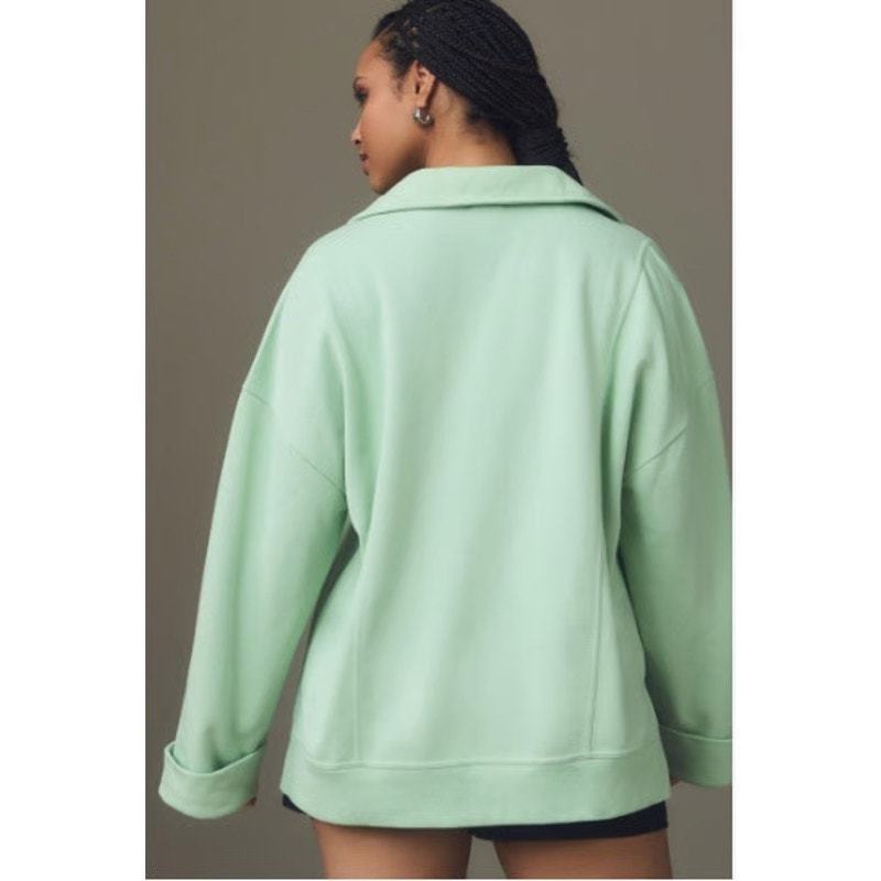 Anthropologie Pilcro Johnny Collar V-Neck Pullover Sweatshirt Green XXS